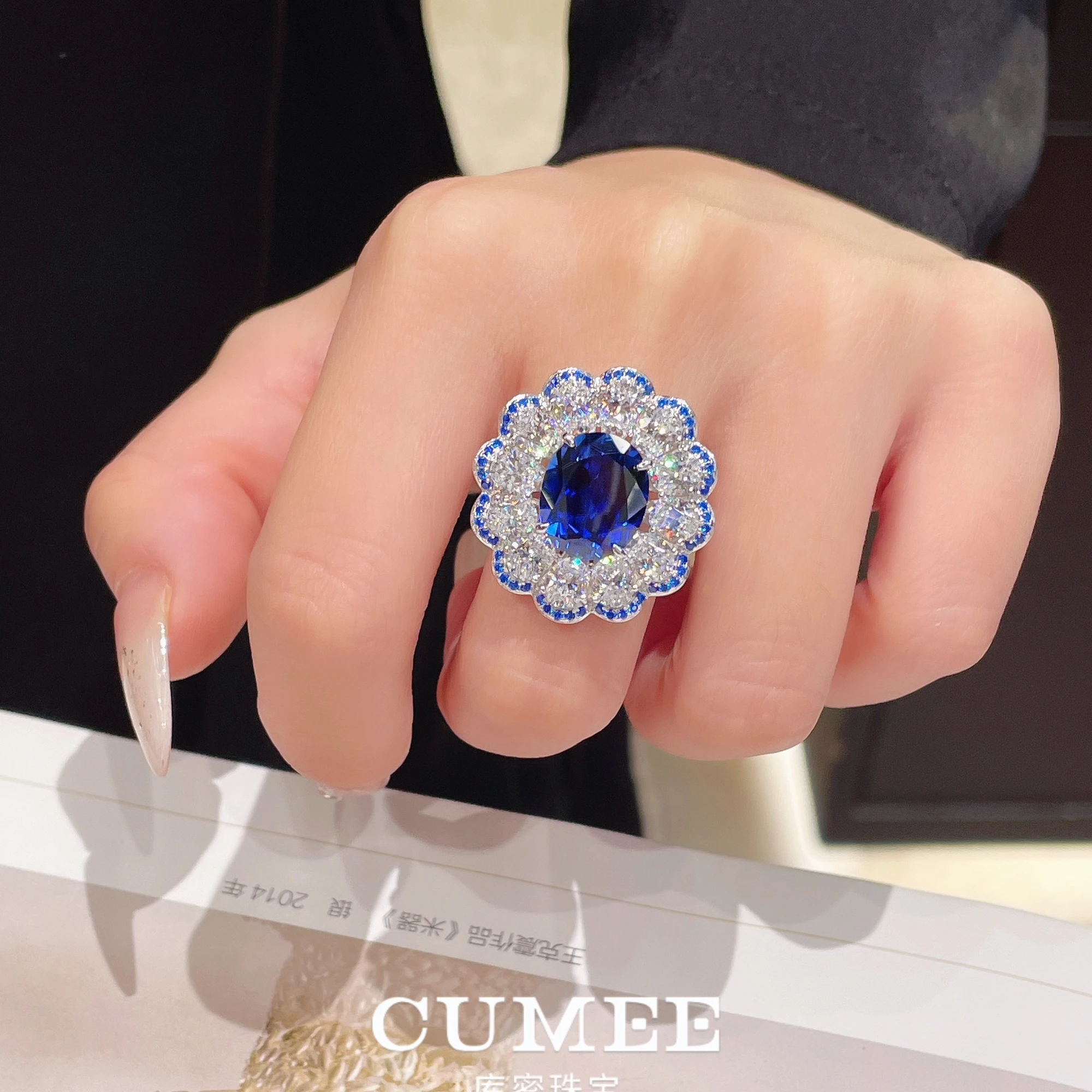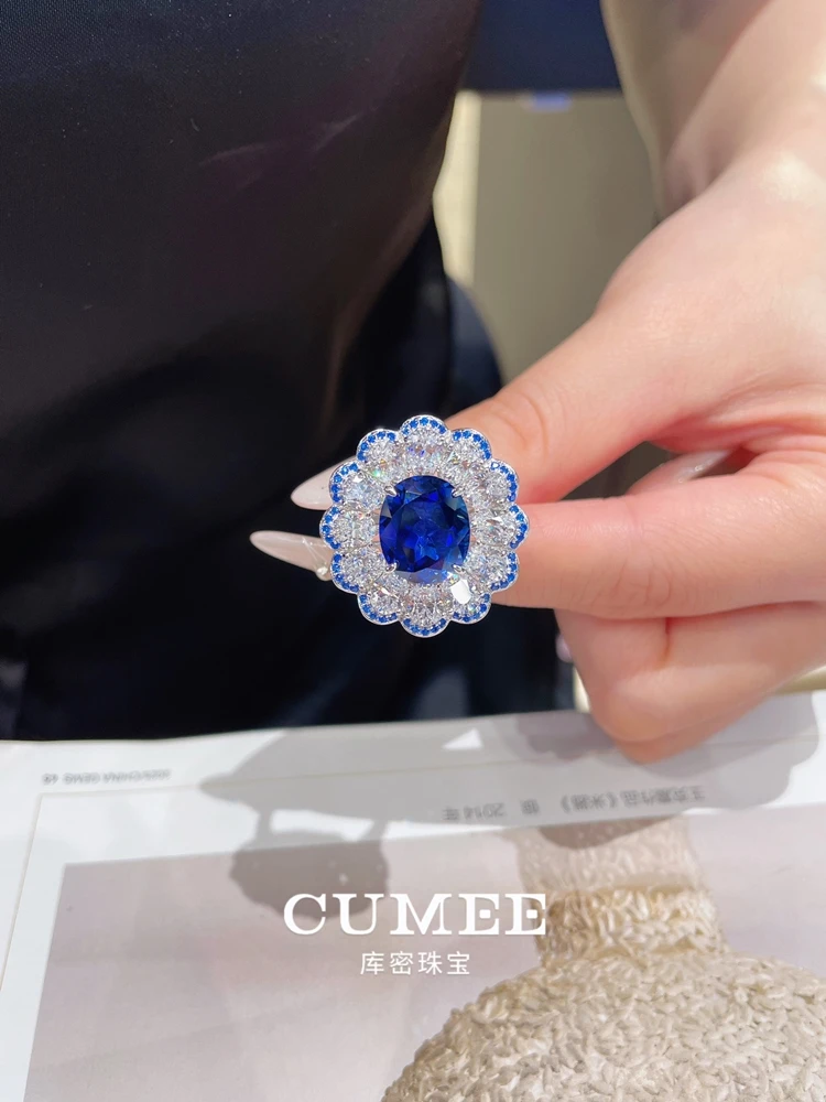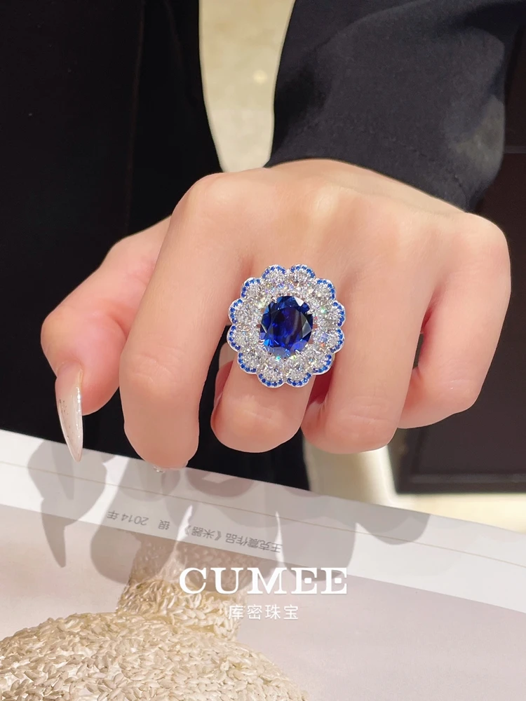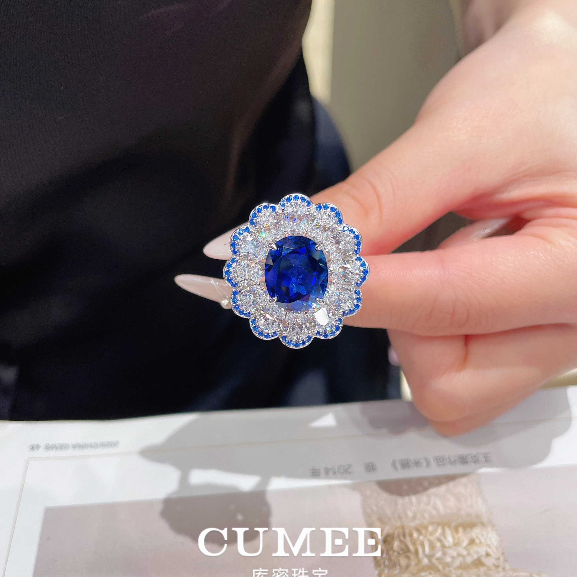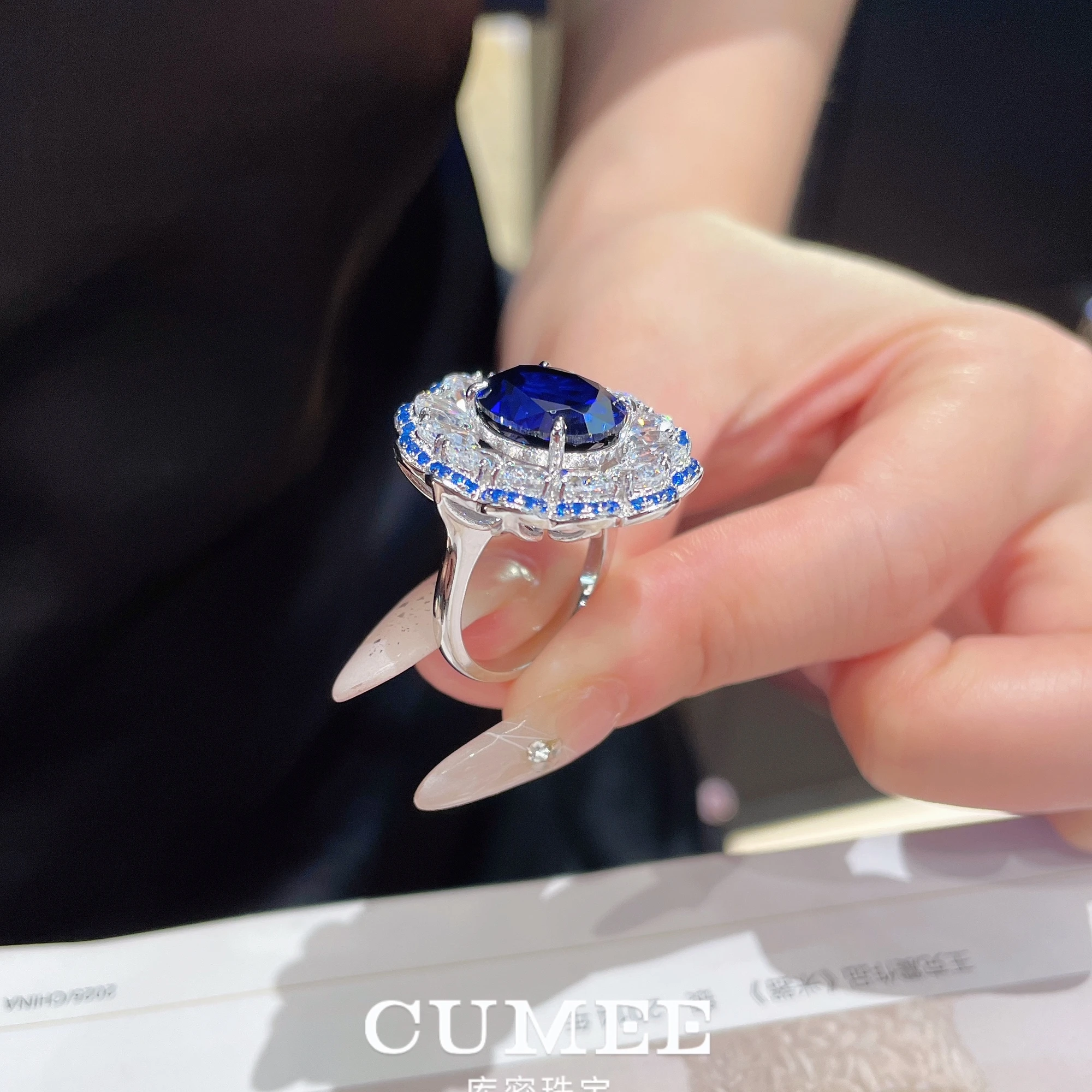 CUMEE Nuovo stile cinese Gonna alla moda Anello da donna Stile design Anello con zaffiro sintetico coltivato. Oro placcato argento