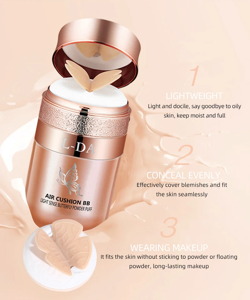 Q bomba ‘farfalla svolazzante’ sensazione morbida cerosa, elasticità, trucco delicato sulla pelle, conforme uniforme