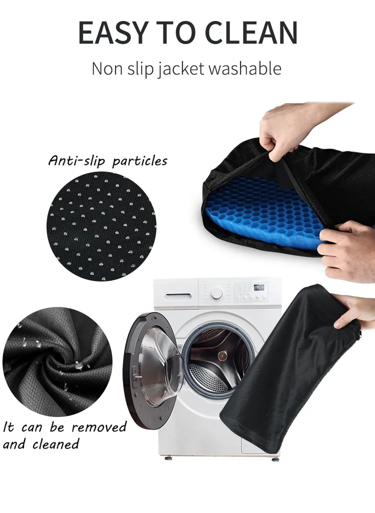 【Pulizia facile e portatile per i viaggi. Il cuscino del sedile in gel con cerniera lavabile in lavatrice, facile da pulire. Il sedile in gel è leggero e portatile, puoi portarlo a casa, in ufficio, in sedia a rotelle e al cinema. Ed è abbastanza piccolo da trasportare in aereo per voli lunghi. Puoi usarlo in qualsiasi stagione!