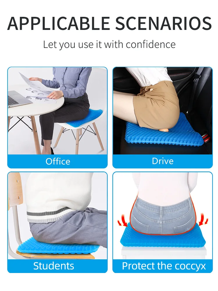 【Buona traspirabilità e super praticalitàIl cuscino del sedile in gel con una struttura a nido d’ape “, quindi ha una piacevole capacità di respirazione, che potrebbe far circolare meglio l’aria, anche se sei seduto a lungo, può ancora Mantieniti fresco e confortevole in tutti i giorni.