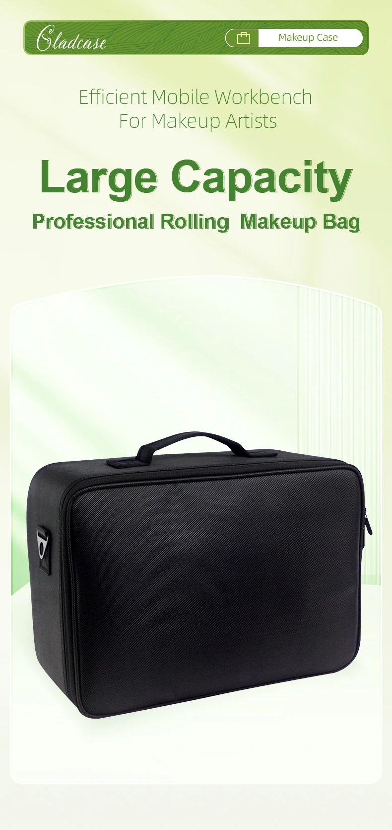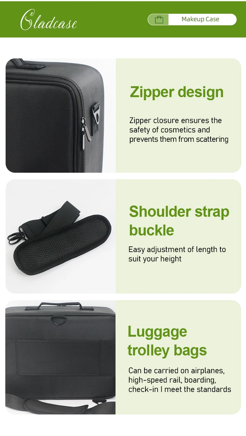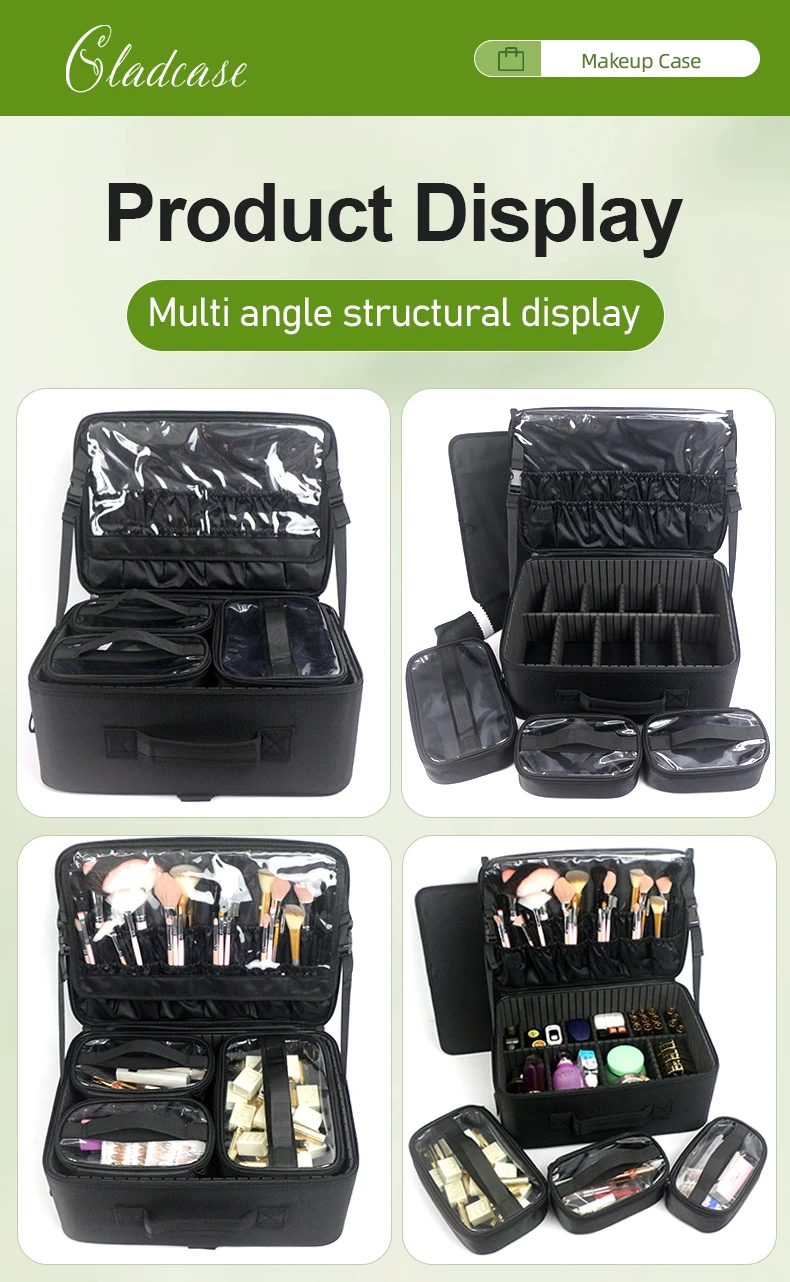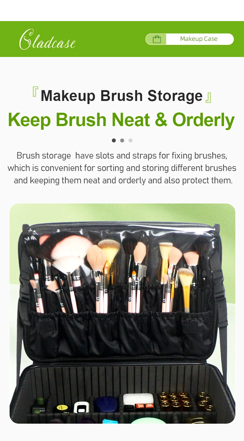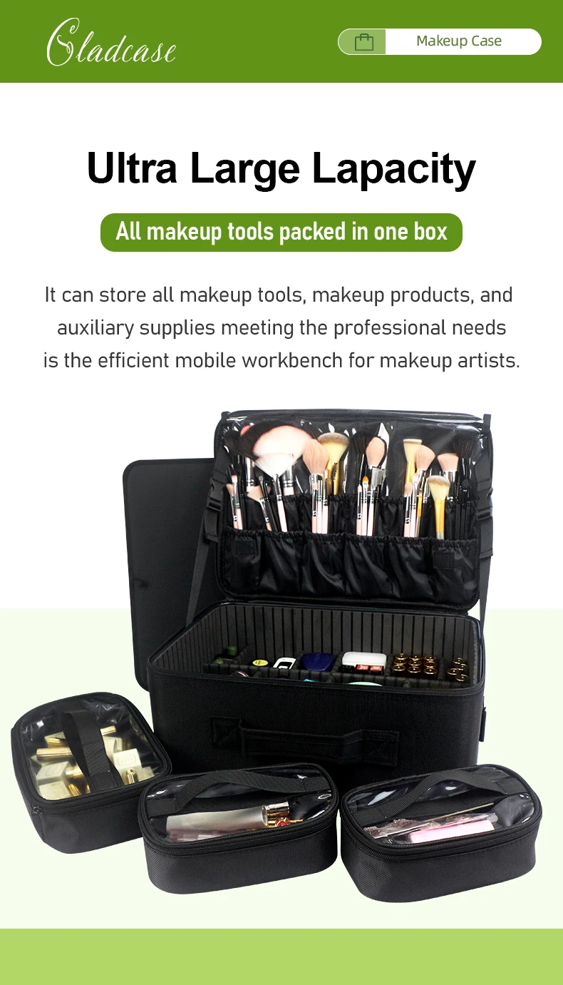 GLADCASE Custodia per cosmetici a 3 strati Scatola per organizer per cosmetici professionale Custodia per trucco da viaggio di grande capacità, Organizzatore portatile per artisti con divisori regolabili e tracolla per articoli da toeletta Gioielli.