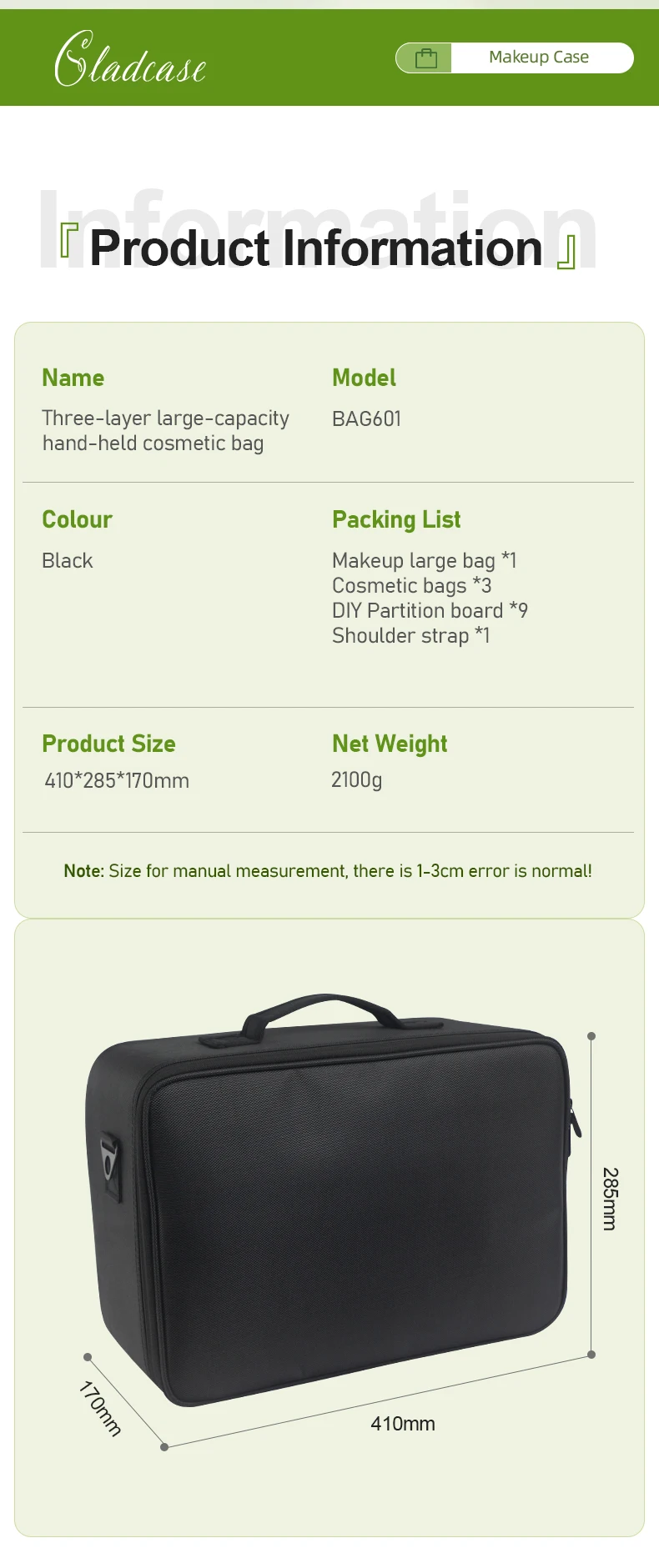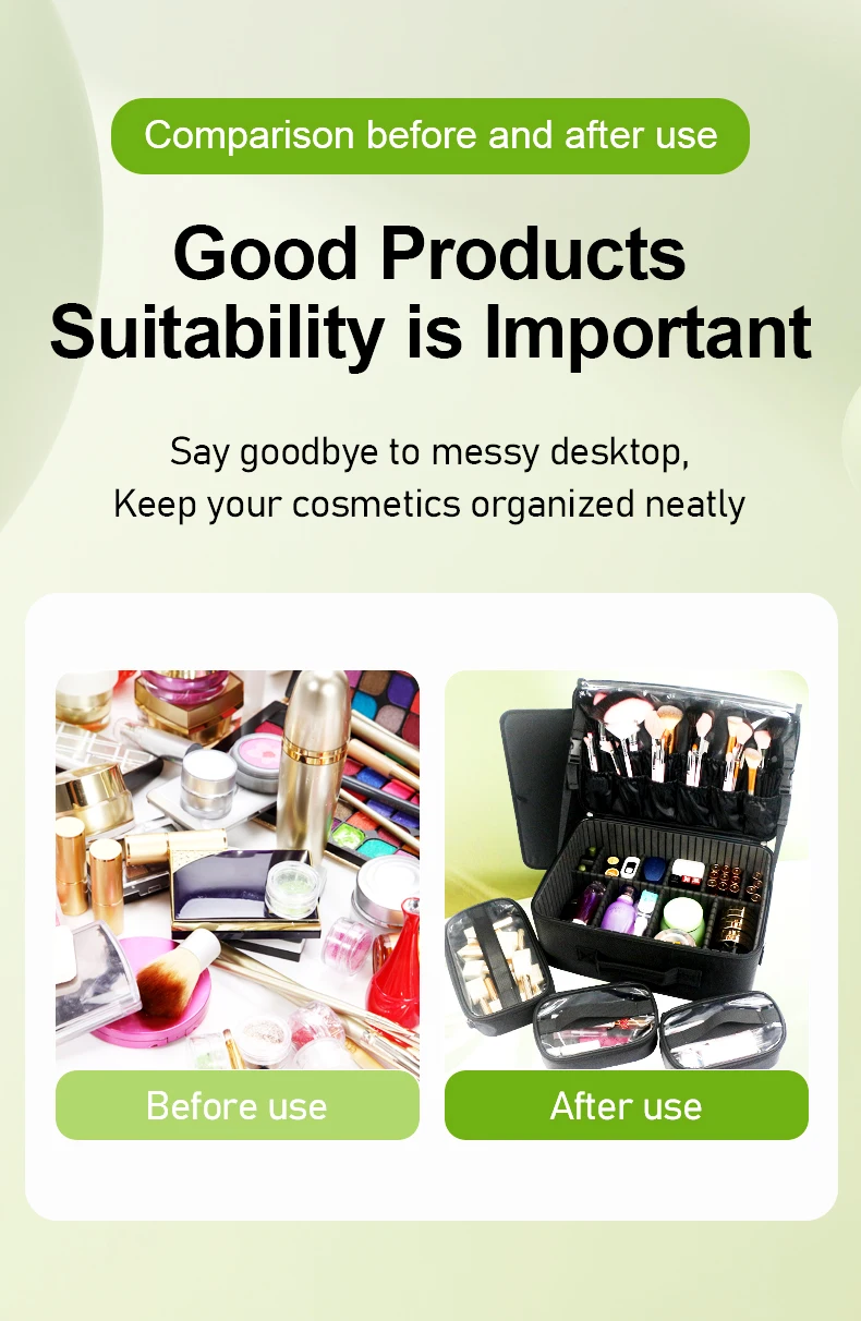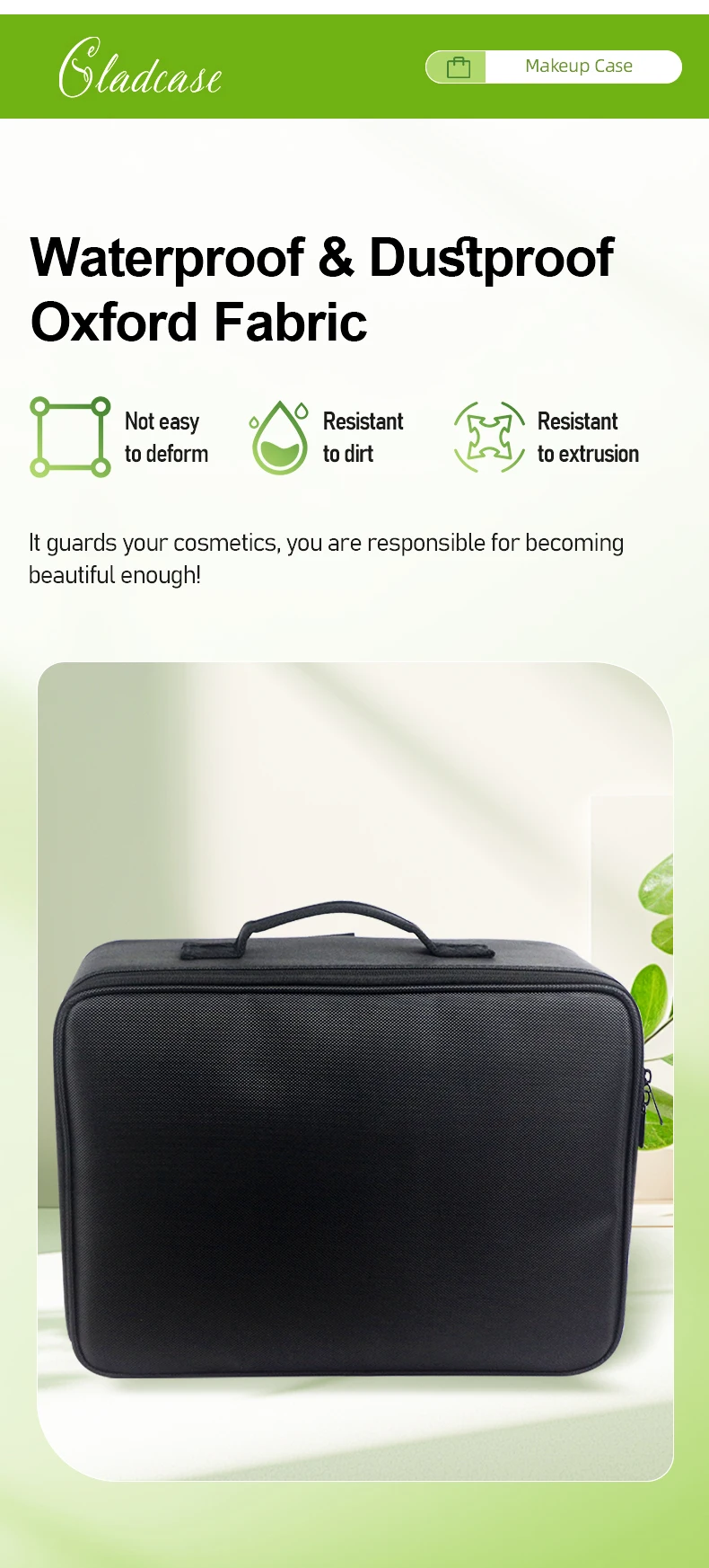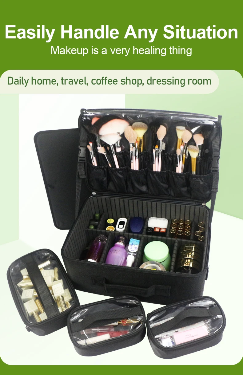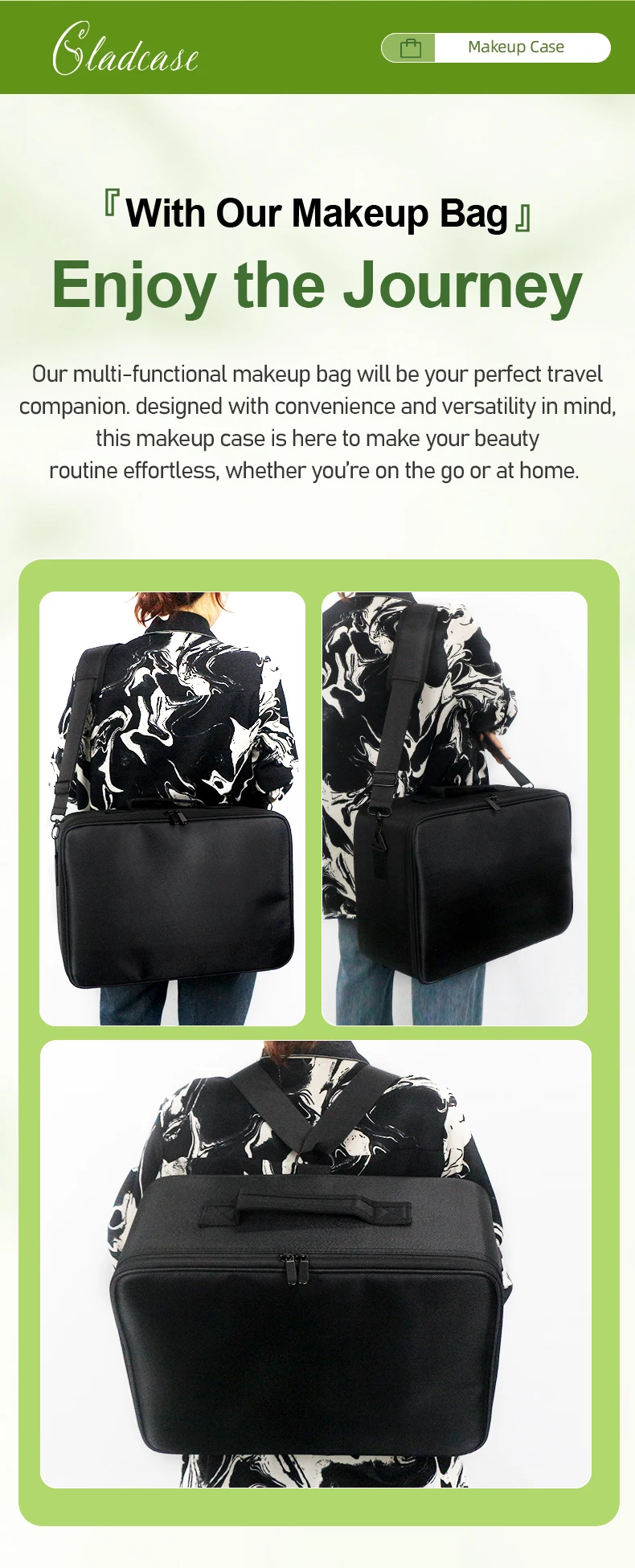 GLADCASE Custodia per cosmetici a 3 strati Scatola per organizer per cosmetici professionale Custodia per trucco da viaggio di grande capacità, Organizzatore portatile per artisti con divisori regolabili e tracolla per articoli da toeletta Gioielli.