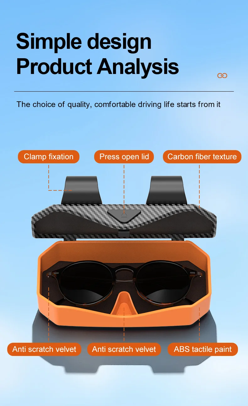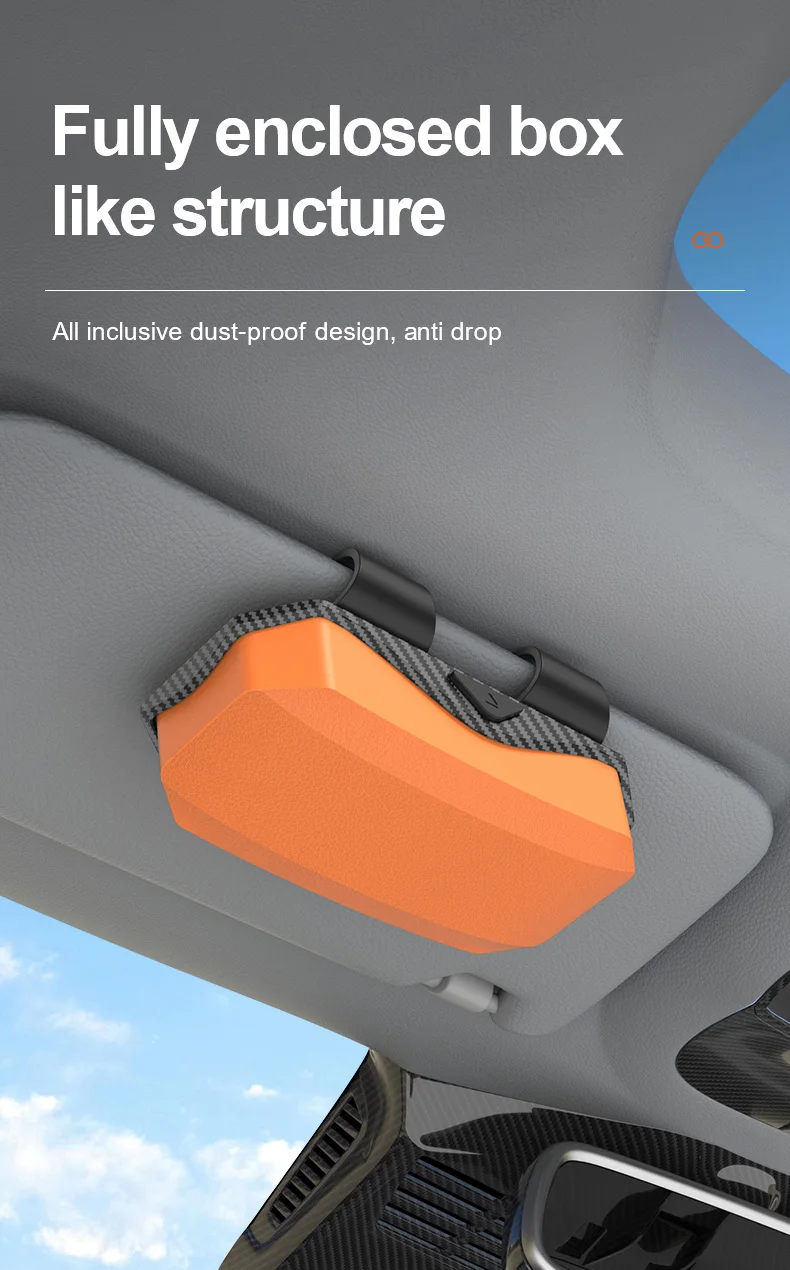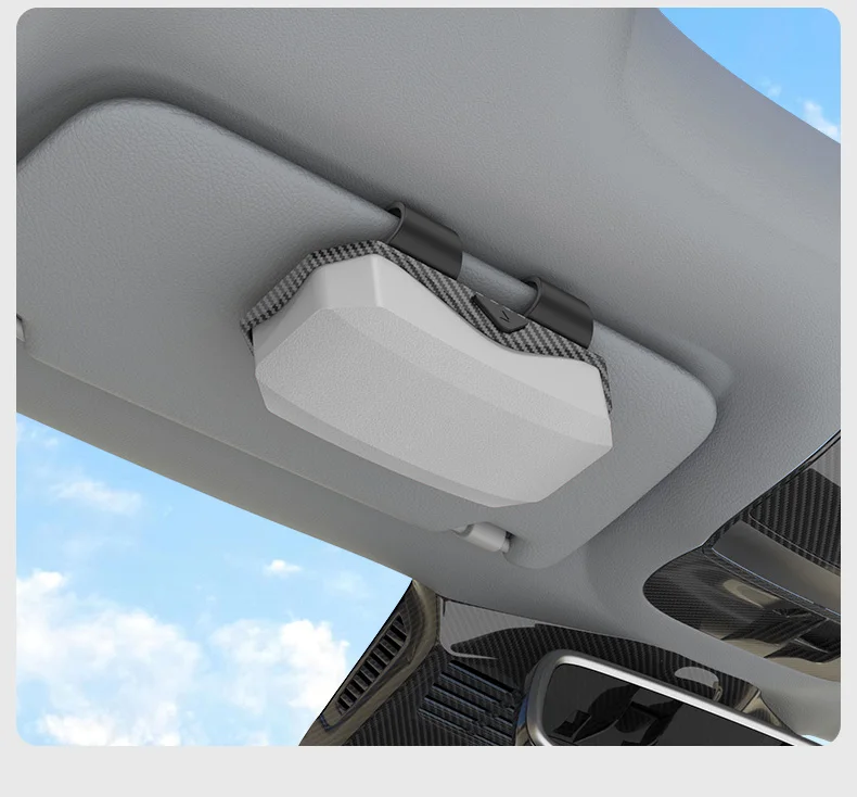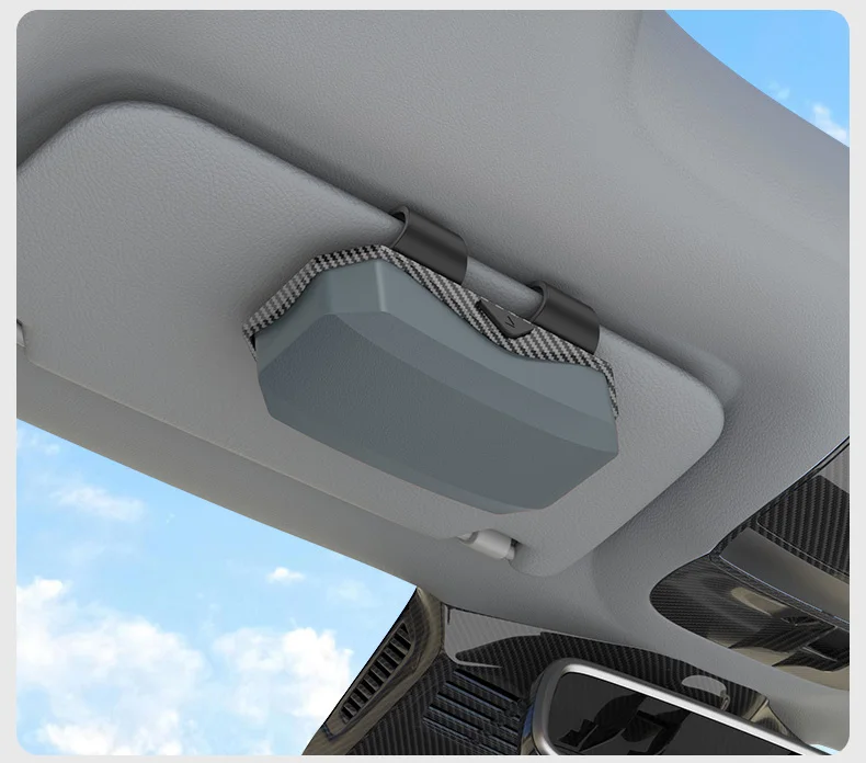 Custodia per occhiali per auto, scatola portaoggetti per occhiali da sole per veicoli, clip per visiera parasole, accessori interni, materiale antigraffio interno