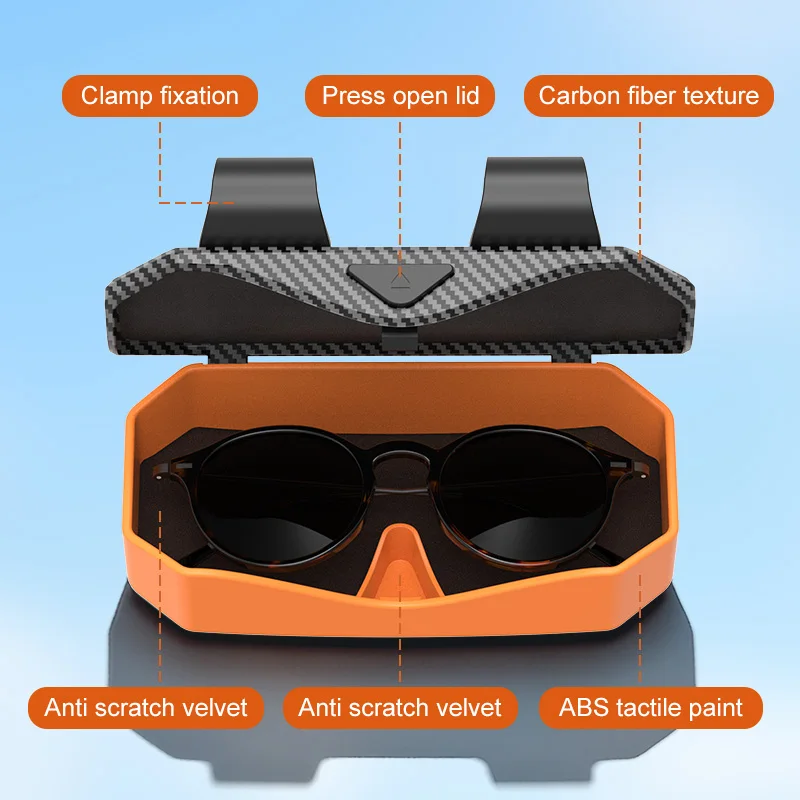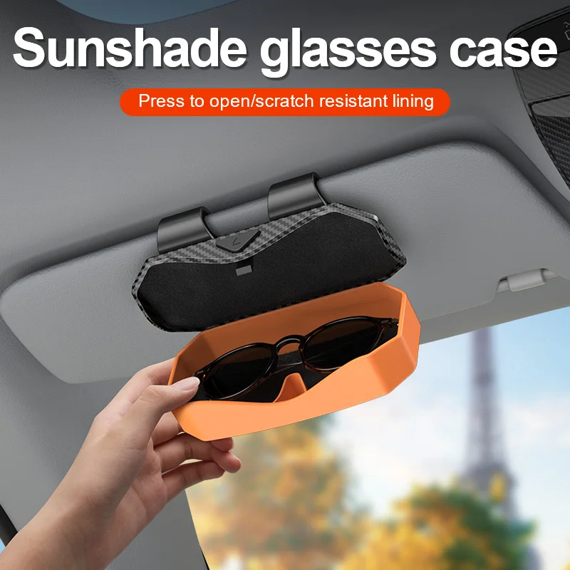 Custodia per occhiali per auto, scatola portaoggetti per occhiali da sole per veicoli, clip per visiera parasole, accessori interni, materiale antigraffio interno