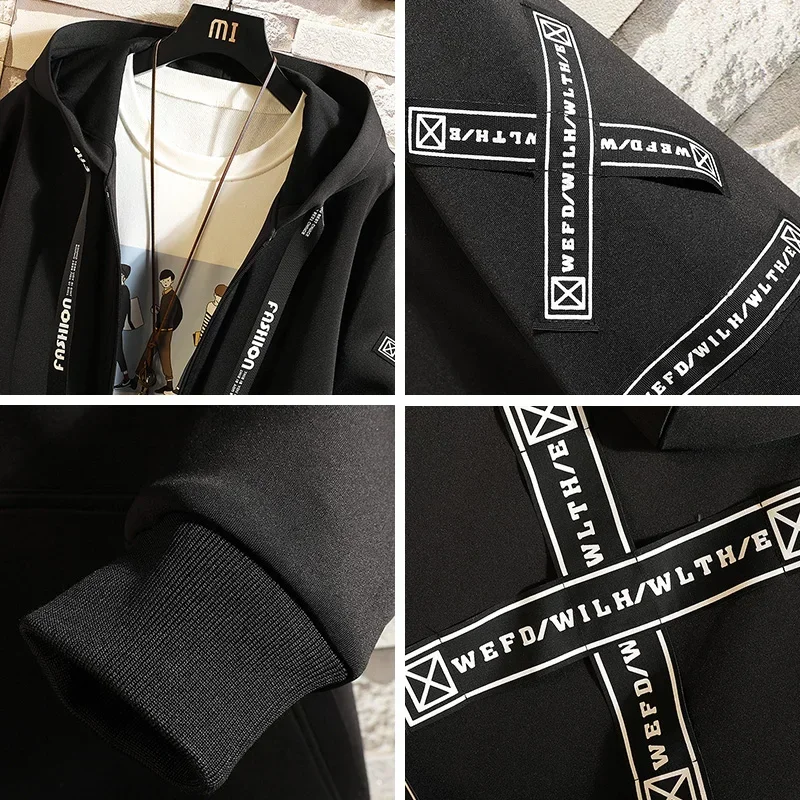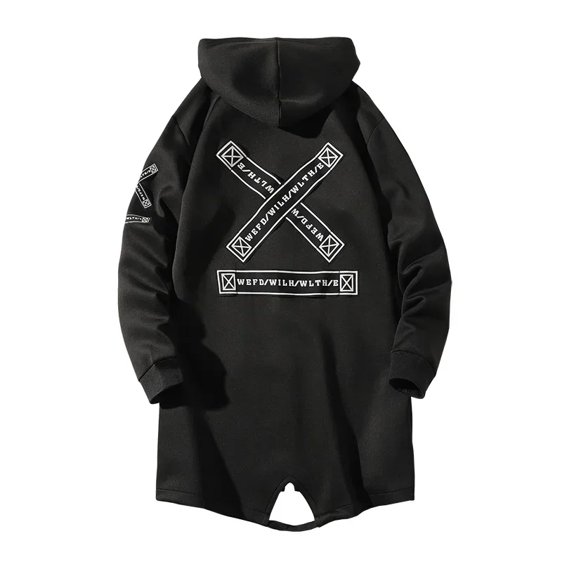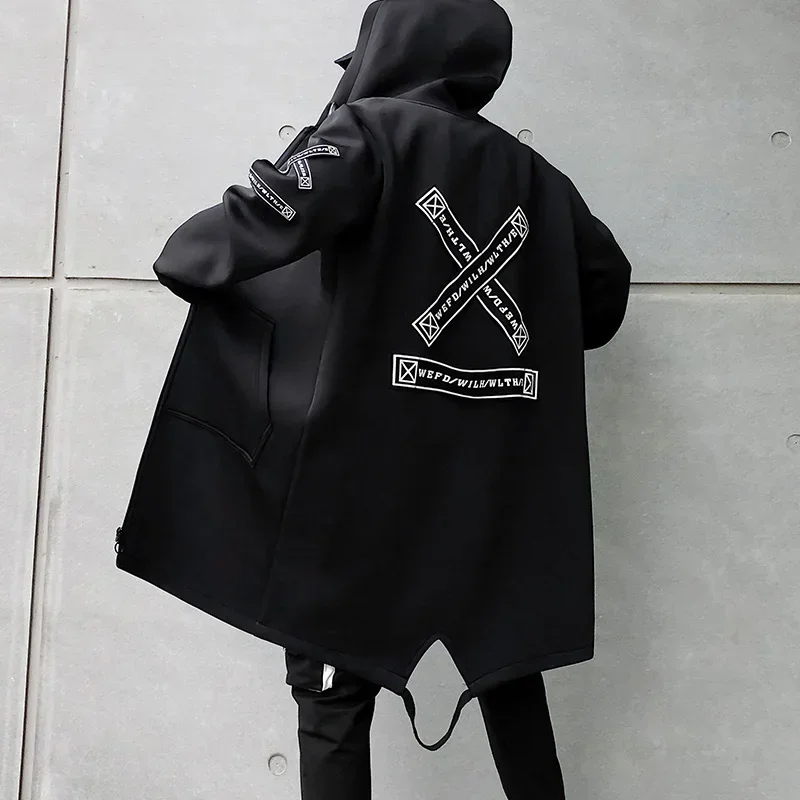 Customizable Spring Autumn Men Hooded Jackets Print Windbreaker Ribbon Overcoat Male Casual Outwear Hip Hop Streetwear Coats