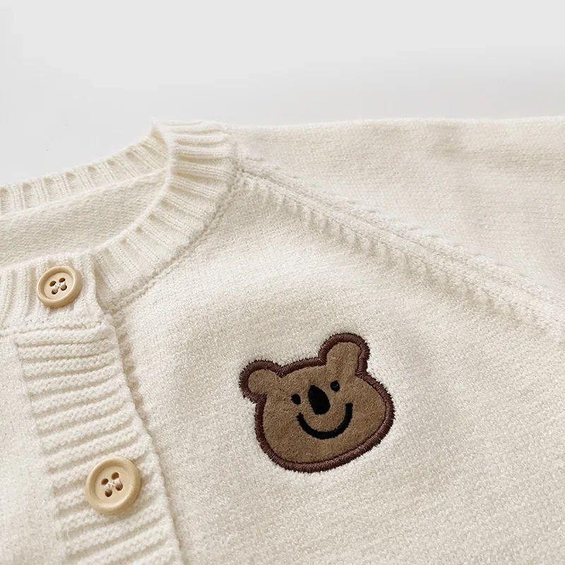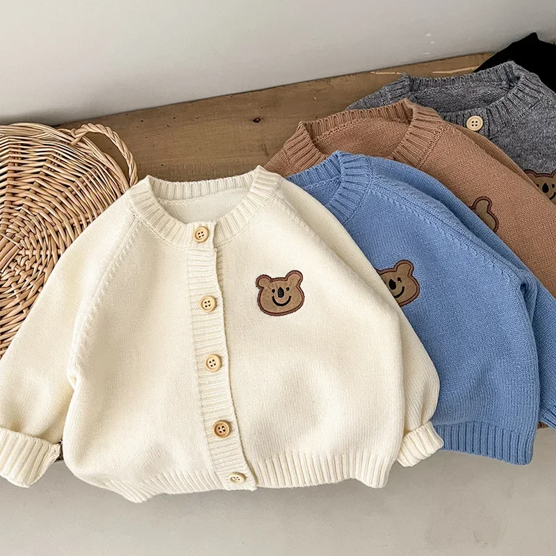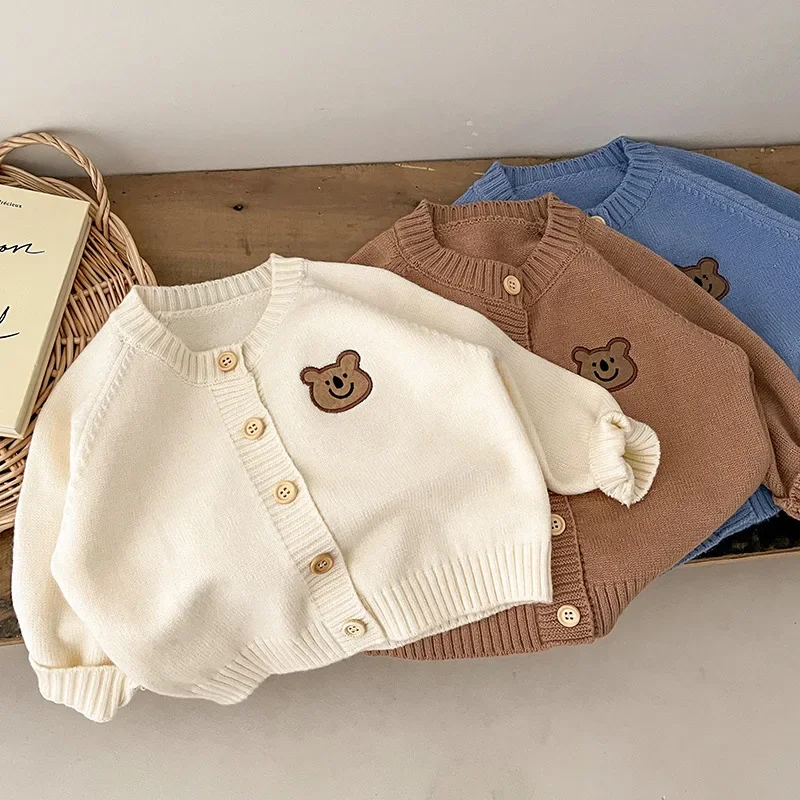Cute Bear Knit Baby Girl Coat Children’s Knitted Cardigan Long Sleeved Top Baby Sweater Outdoor Wear Baby Clothes New Born