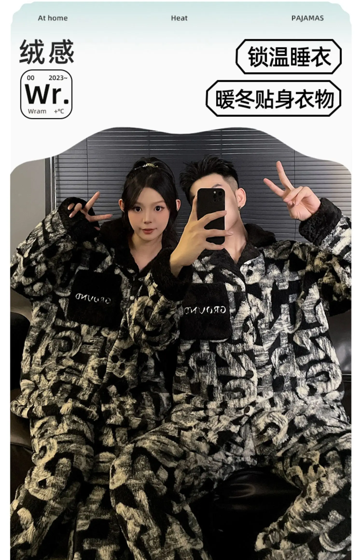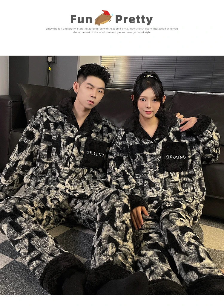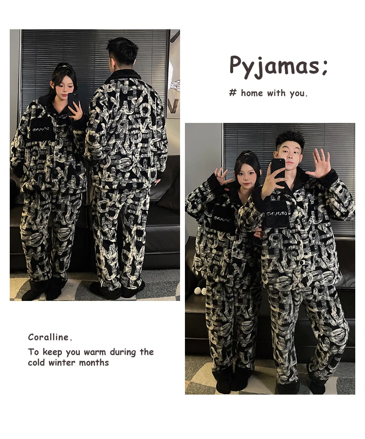 DAIMELU autunno set di indumenti da notte in pile corallo coppia pigiama da donna flanella ispessita caldo pigiama da uomo pigiama invernale