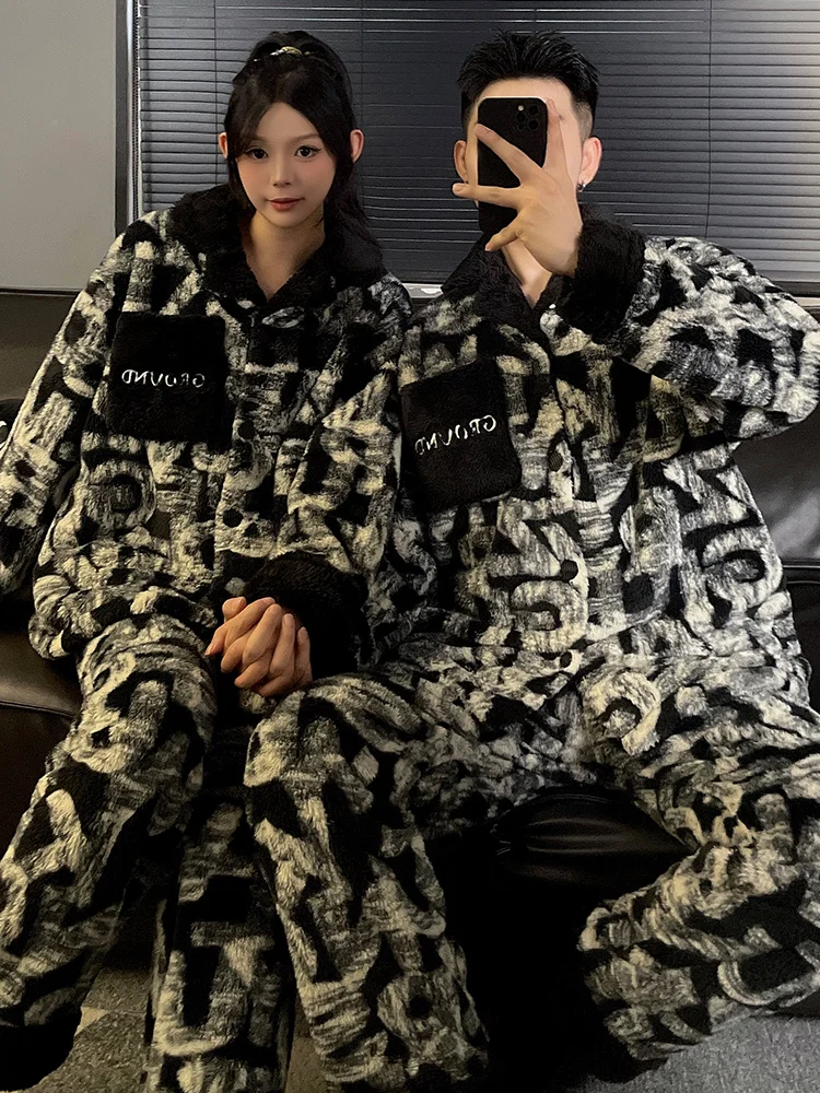 DAIMELU autunno set di indumenti da notte in pile corallo coppia pigiama da donna flanella ispessita caldo pigiama da uomo pigiama invernale
