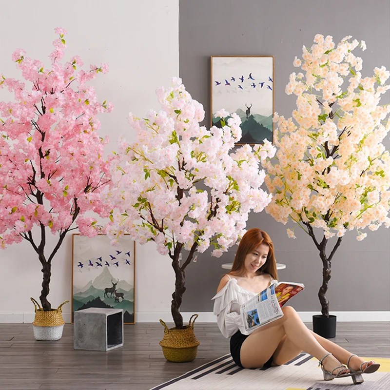 Decorazione della casa albero di ciliegio artificiale Bonsai matrimonio Indoor soggiorno pavimento pianta finta con lavabo decorazione floreale simulata