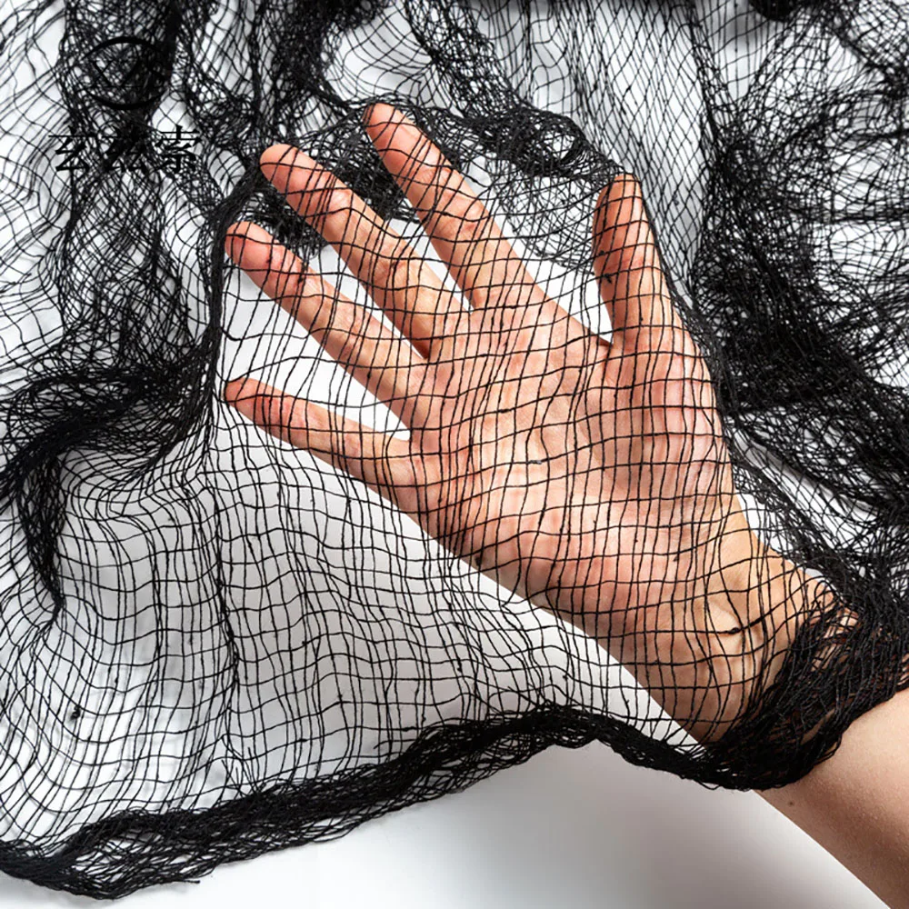 Decorazione di Halloween Garza nera, ragnatela artificiale, panno raccapricciante nero, oggetti di scena gotici per decorazioni per la casa stregata