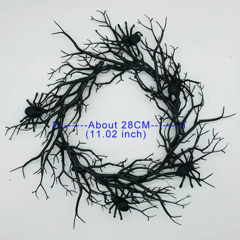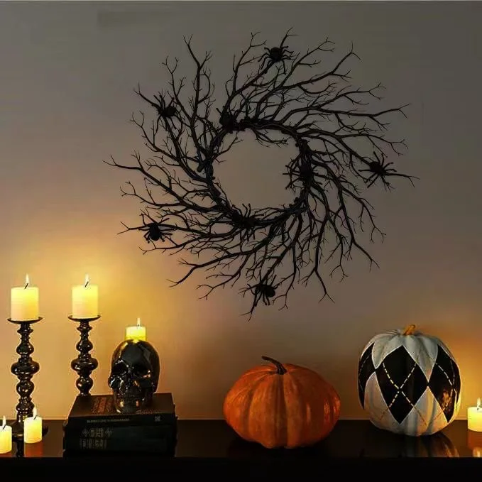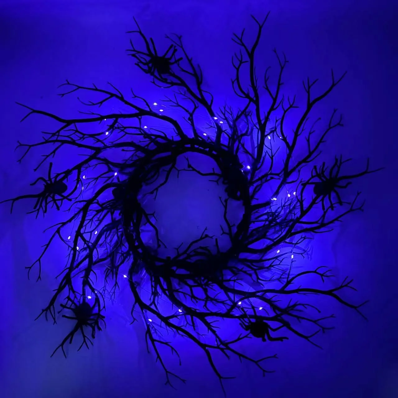 Decorazione di Halloween ghirlanda ramo nero con corde a LED ragno luce alimentata a batteria per la decorazione della parete della porta d’ingresso della casa del partito