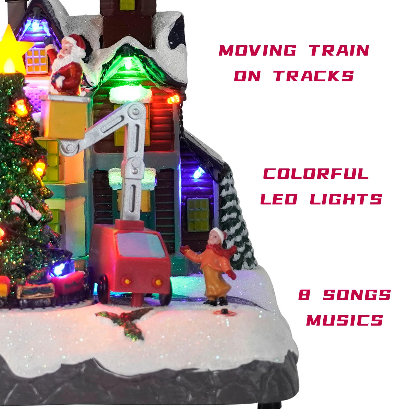 Scultura girevole di natale incandescente della casa della neve figurina di paesaggi musicali per il regalo della decorazione del negozio del Bar di casa