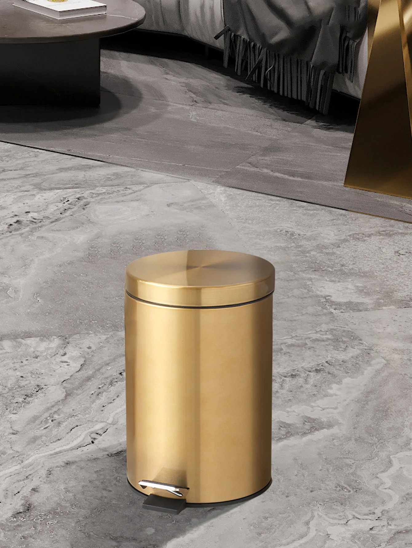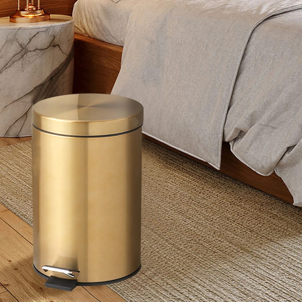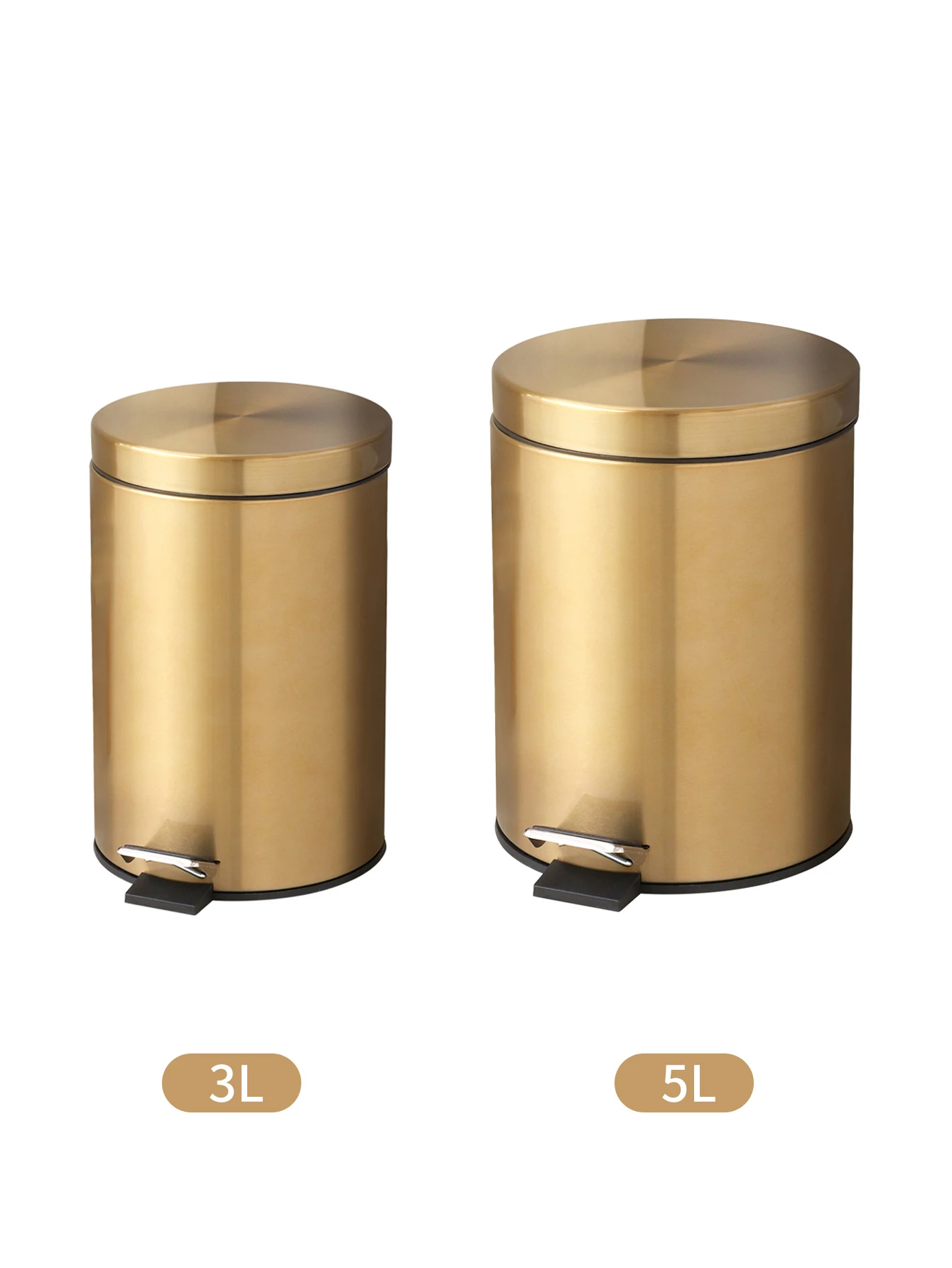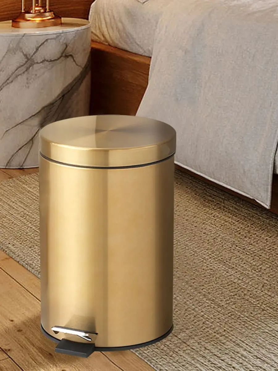 Contenitore per la polvere moderno da 5 litri in acciaio inossidabile champagne silenzioso per hotel, bagno e cucina, bidone della spazzatura impermeabile in metallo per uso domestico, piede dorato