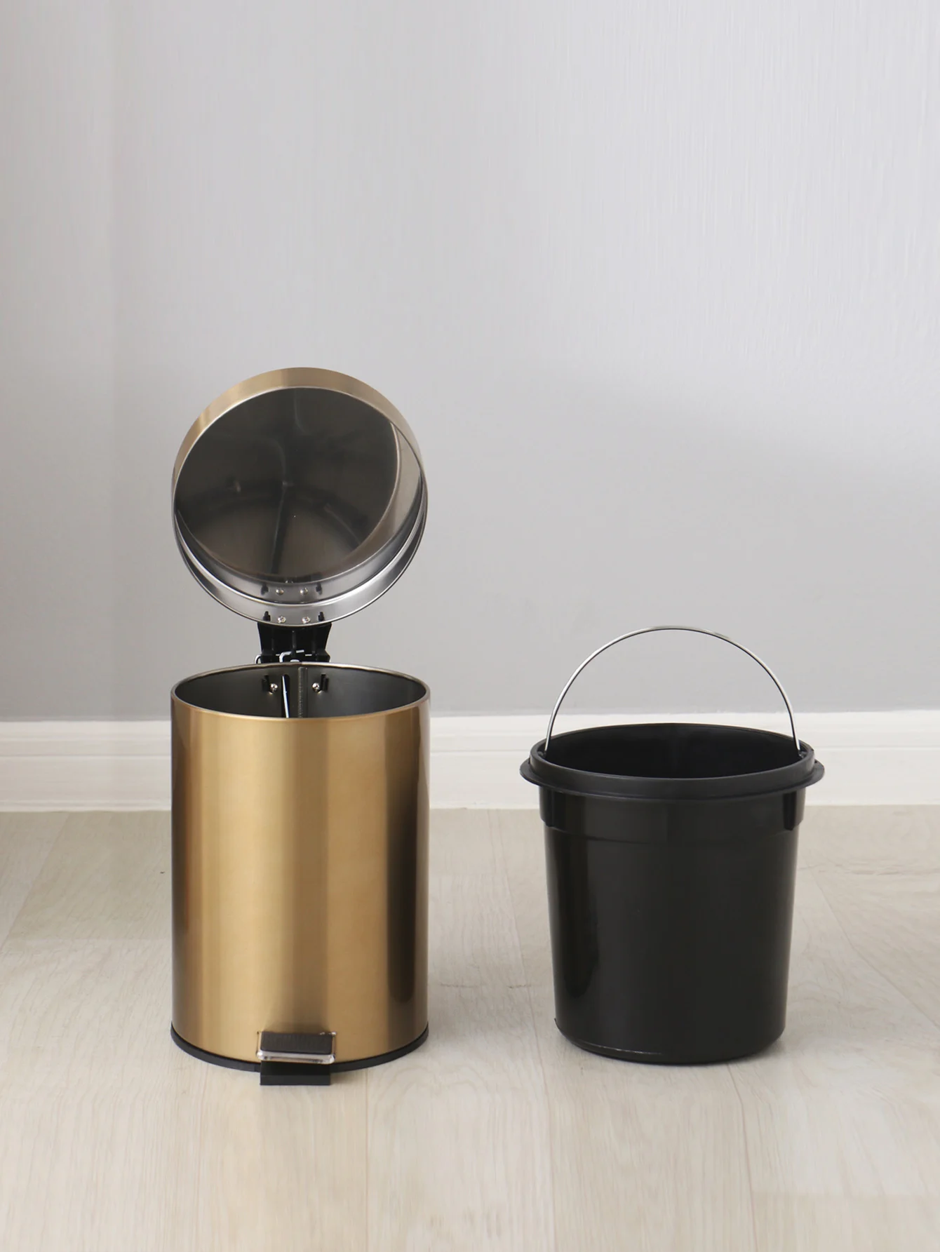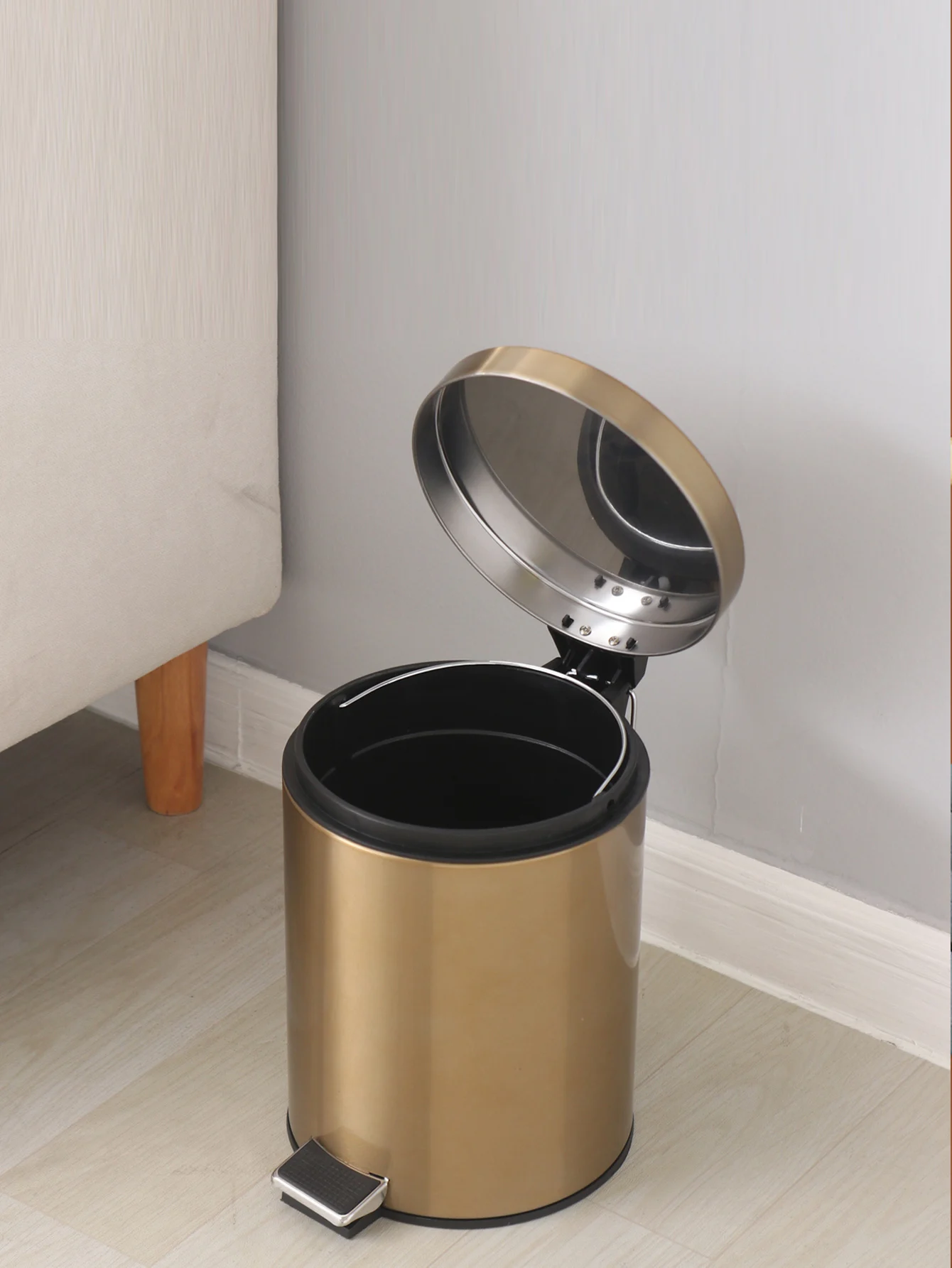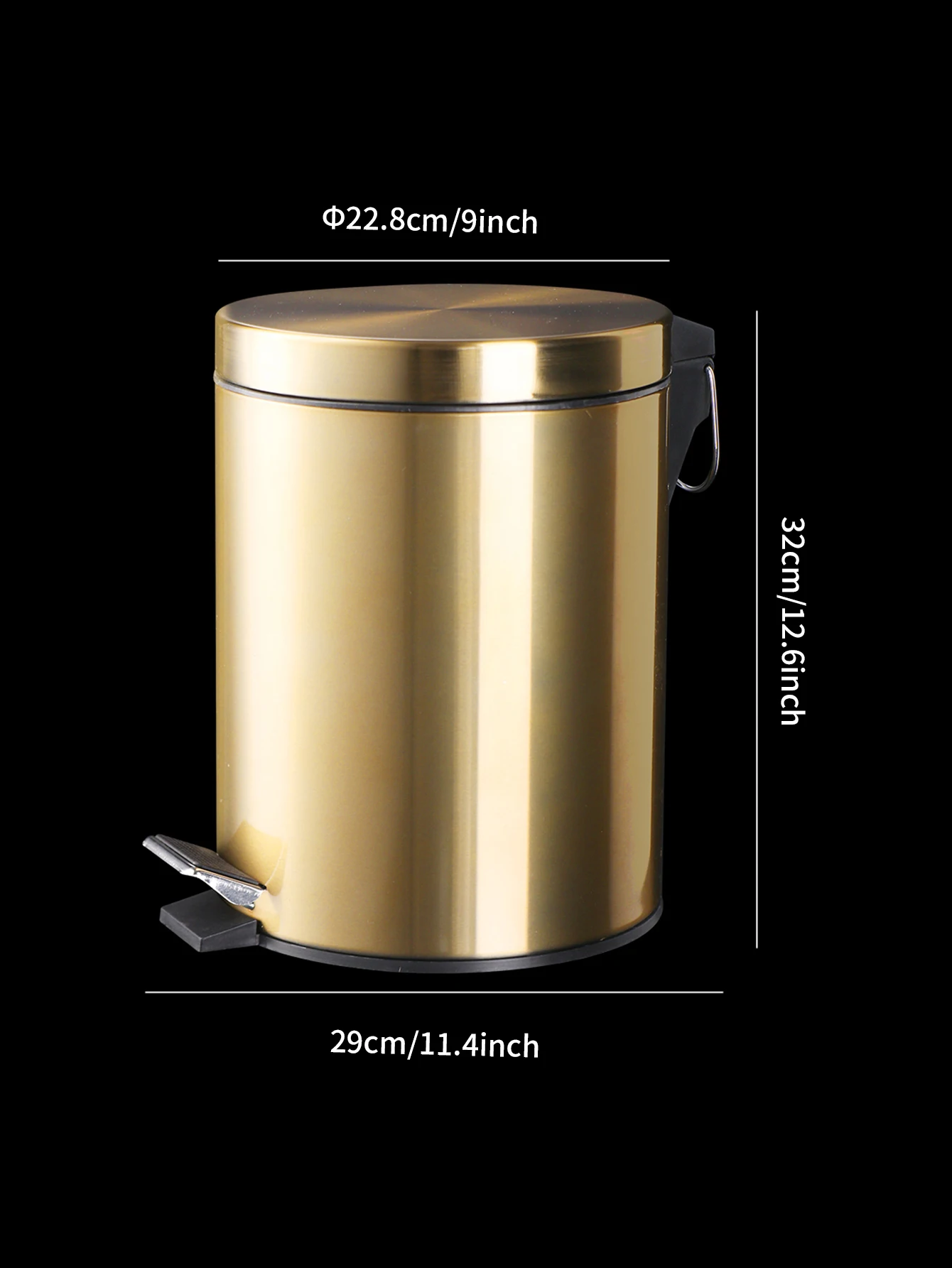 Contenitore per la polvere moderno da 5 litri in acciaio inossidabile champagne silenzioso per hotel, bagno e cucina, bidone della spazzatura impermeabile in metallo per uso domestico, piede dorato