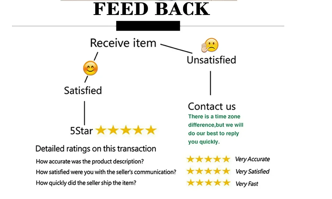 1.Se sei soddisfatto con i nostri prodotti e servizi, si prega di lasciare il tuo feedback positivo di 5 stelle.E 5 stelle per la valutazione dettagliata del tuo ordine.Il corso che dà il tuo feedback positivo.