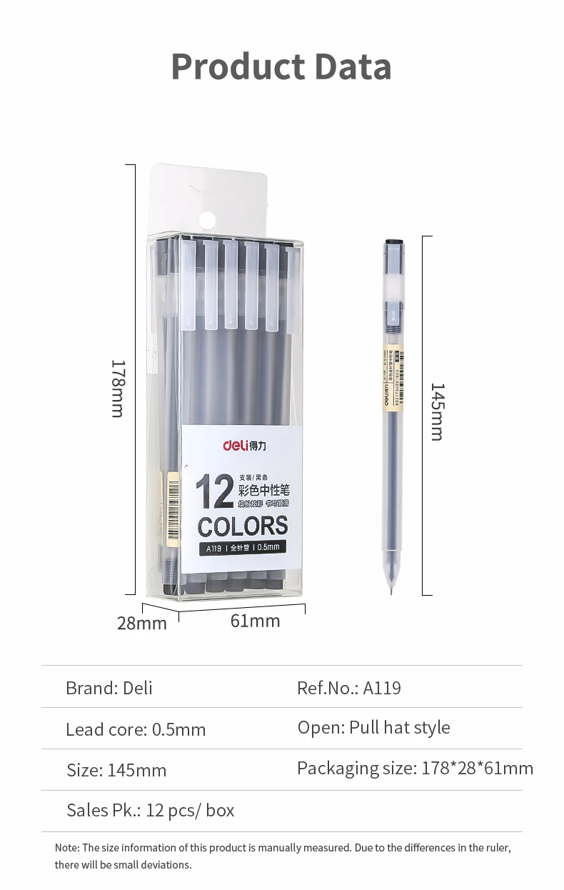 Deli 12 pezzi Set penna gel di ultra qualità scrittura penna neutra nero blu inchiostro rosso penna firma penna a sfera per materiale scolastico per ufficio
