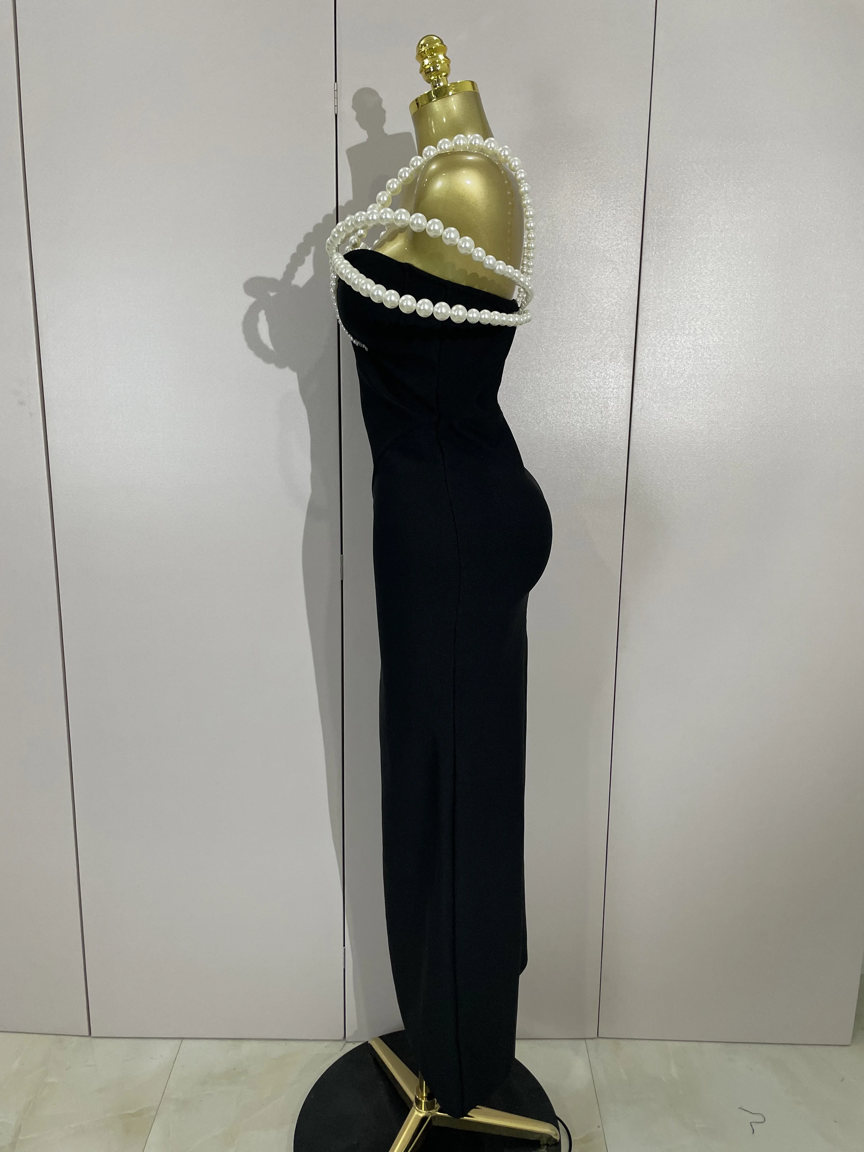 Designer di lusso Perle Scollo a V Maxi Fasciatura lunga Abito aderente Donna Celebrity Evening Party Abiti di compleanno Costumi di scena per cantanti