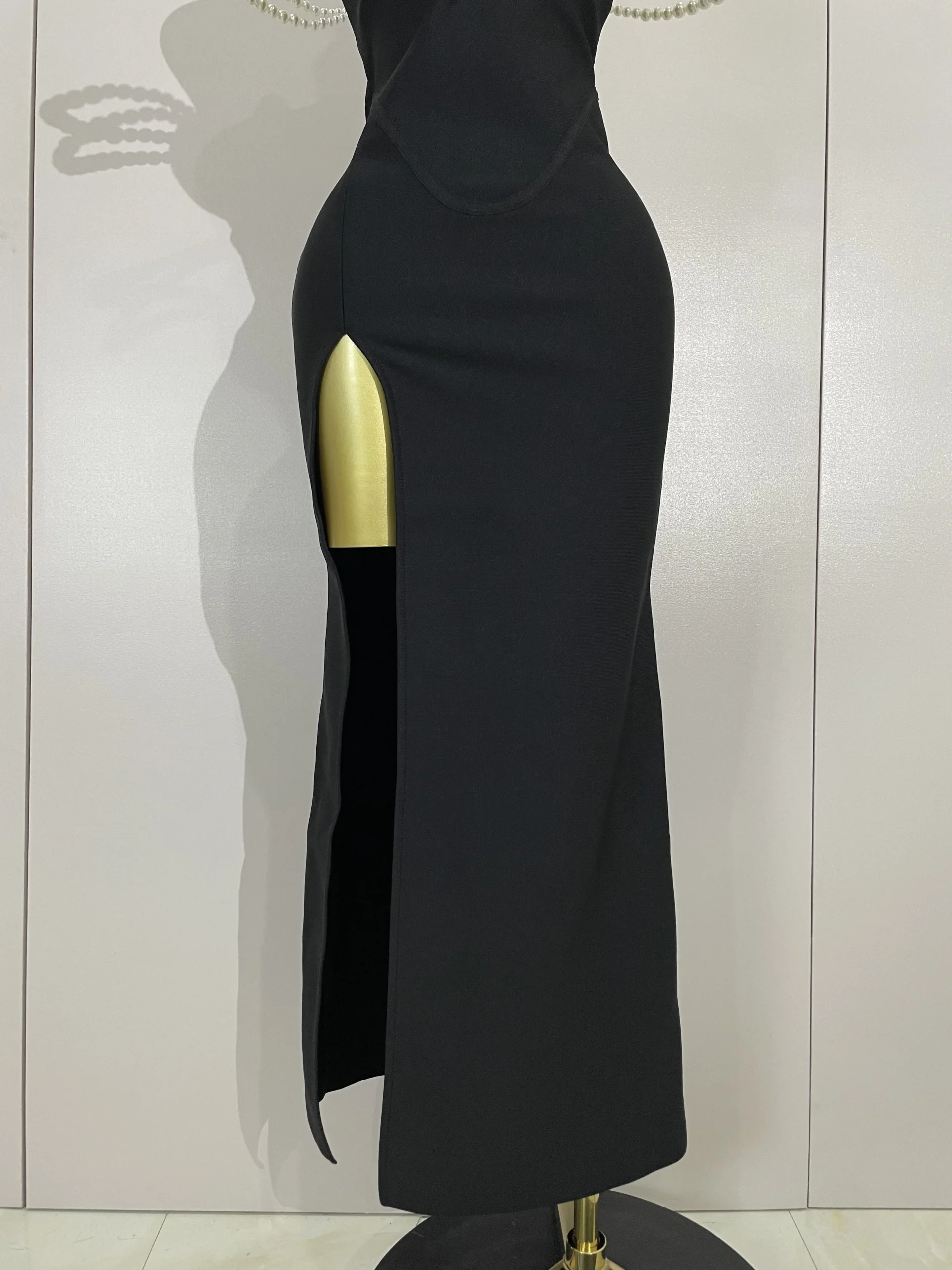 Sexy Bodycon Party tinta unita abito lungo per le donne manica lunga fasciatura abiti Slim 2023 autunno nuova moda abiti abito nero