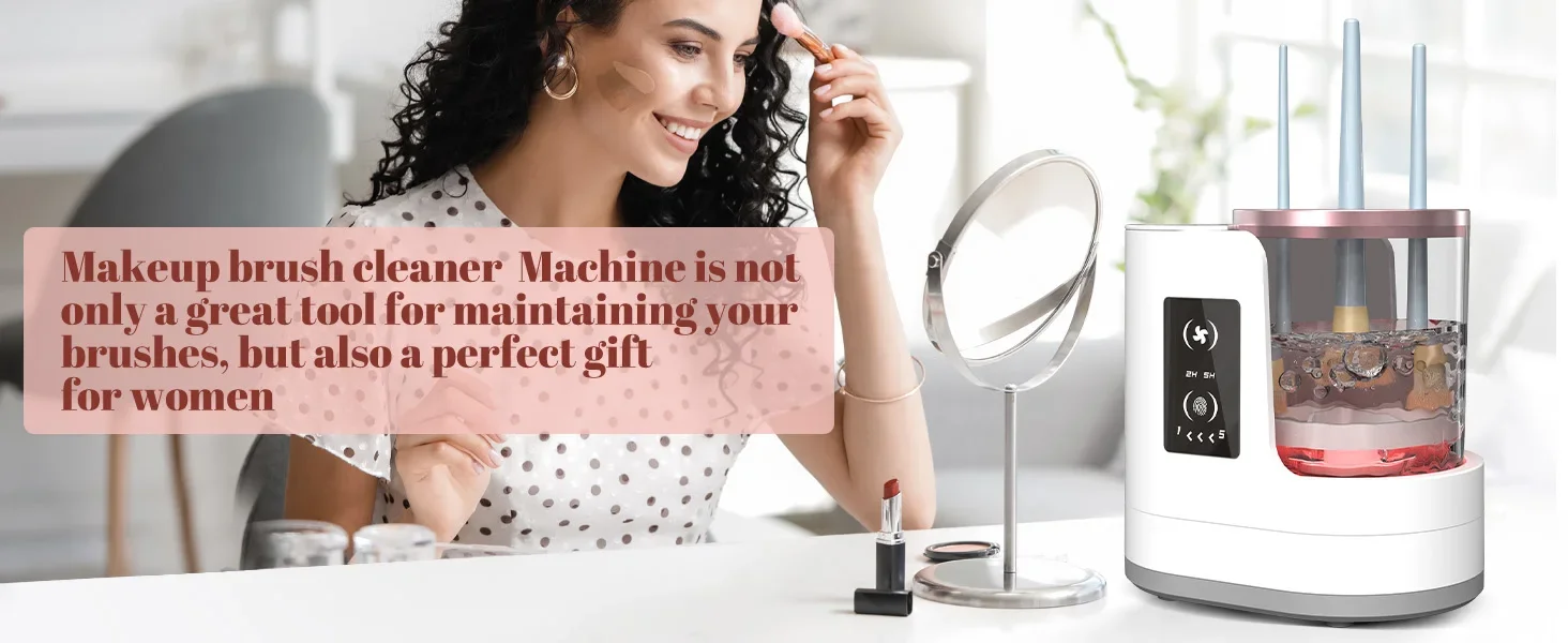 4.Design di temporizzazione: 1.Funzione pulizia spazzola trucco tempo pulizia per cinque minuti, cinque minuti fino alla fine del arresto automatico pulizia (si non lavato per cinque minuti può essere ripetuto per aprire la pulizia) 2.L’essiccatore per pennelli per trucco è diviso in timer di 2 ore e timer di 5 ore di asciugatura, imposta l’ora di arresto automatico dell’asciugatura (Nota: è consigliata che l’asciugatura estiva a 2 ore, set di asciugatura invernale a 5 ore)