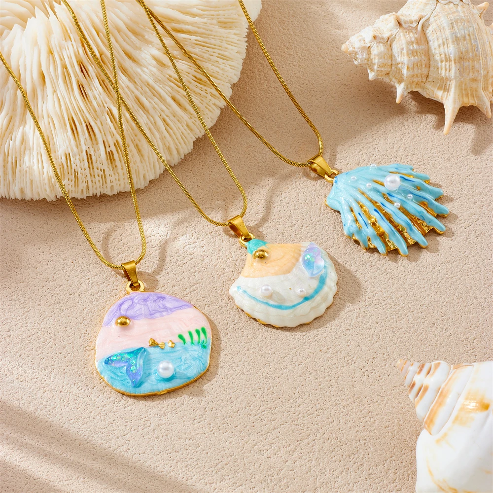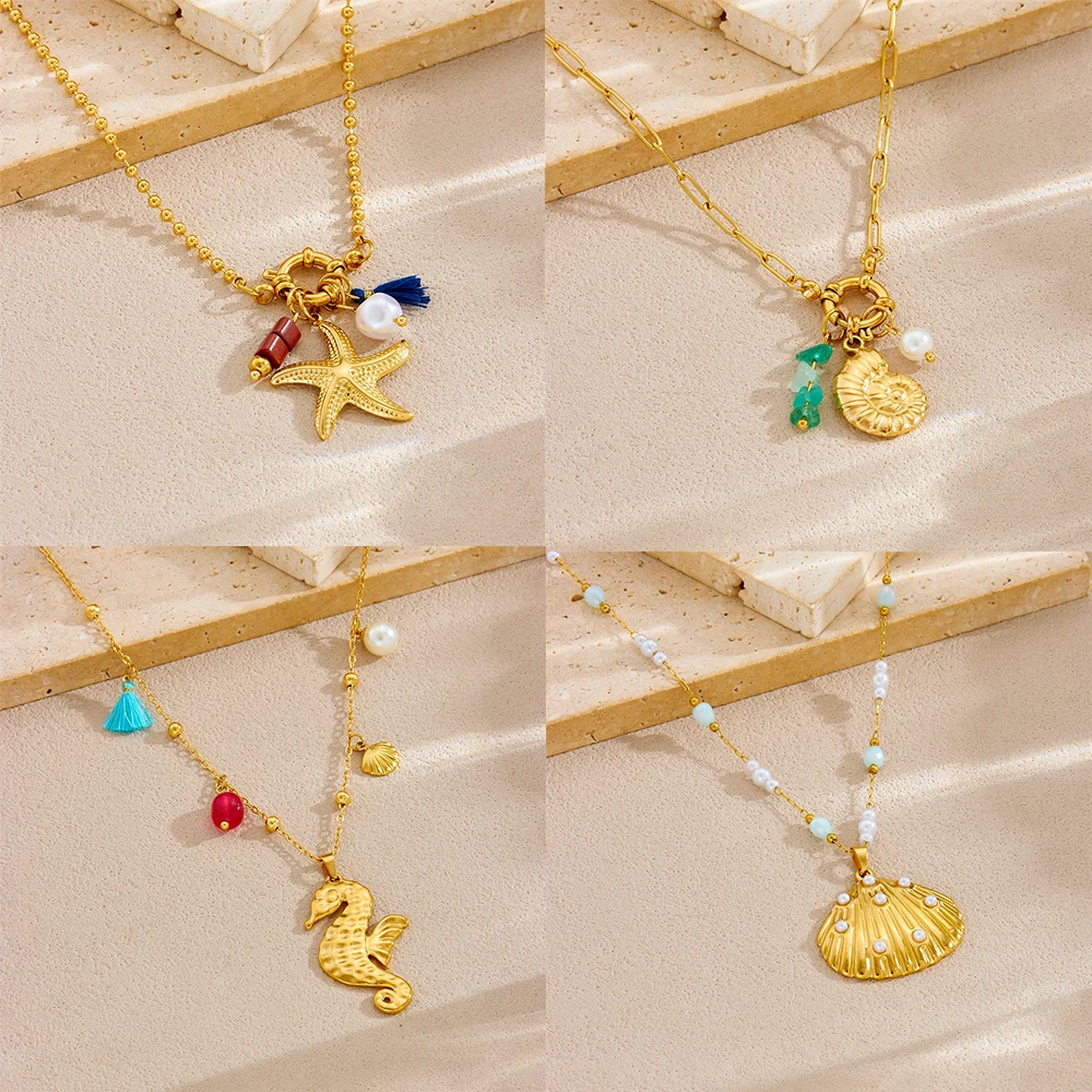 DIEYURO Collana con ciondolo di perle di animali marini di stelle marine in acciaio inossidabile 316L conchiglia Lady New Ocean Series Collana con catena al collo Regalo di gioielli