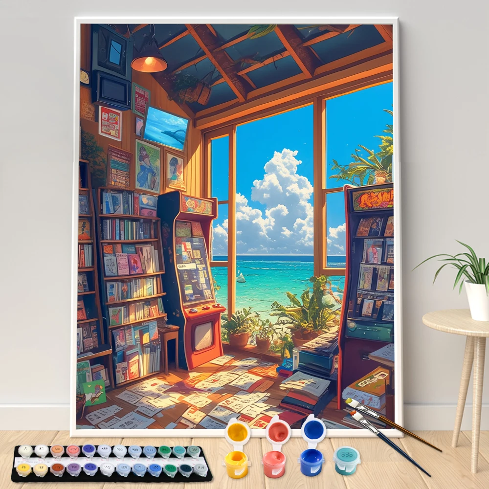 Dipinto con i numeri Biblioteca galleggiante in stile disegnato a mano Kit per adulti Paesaggio marino Pittura acrilica fai da te Opera d’arte Canva Arte Regalo Decorazione della casaPensa ad un Regalo Unico e Utile per le Persone a te Vicine!! Regala un buono a partire da € 10,00 a € 300,00