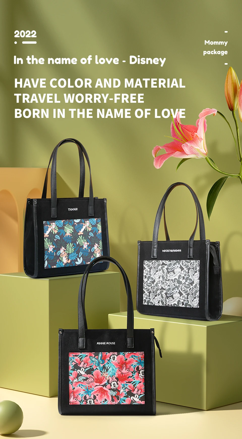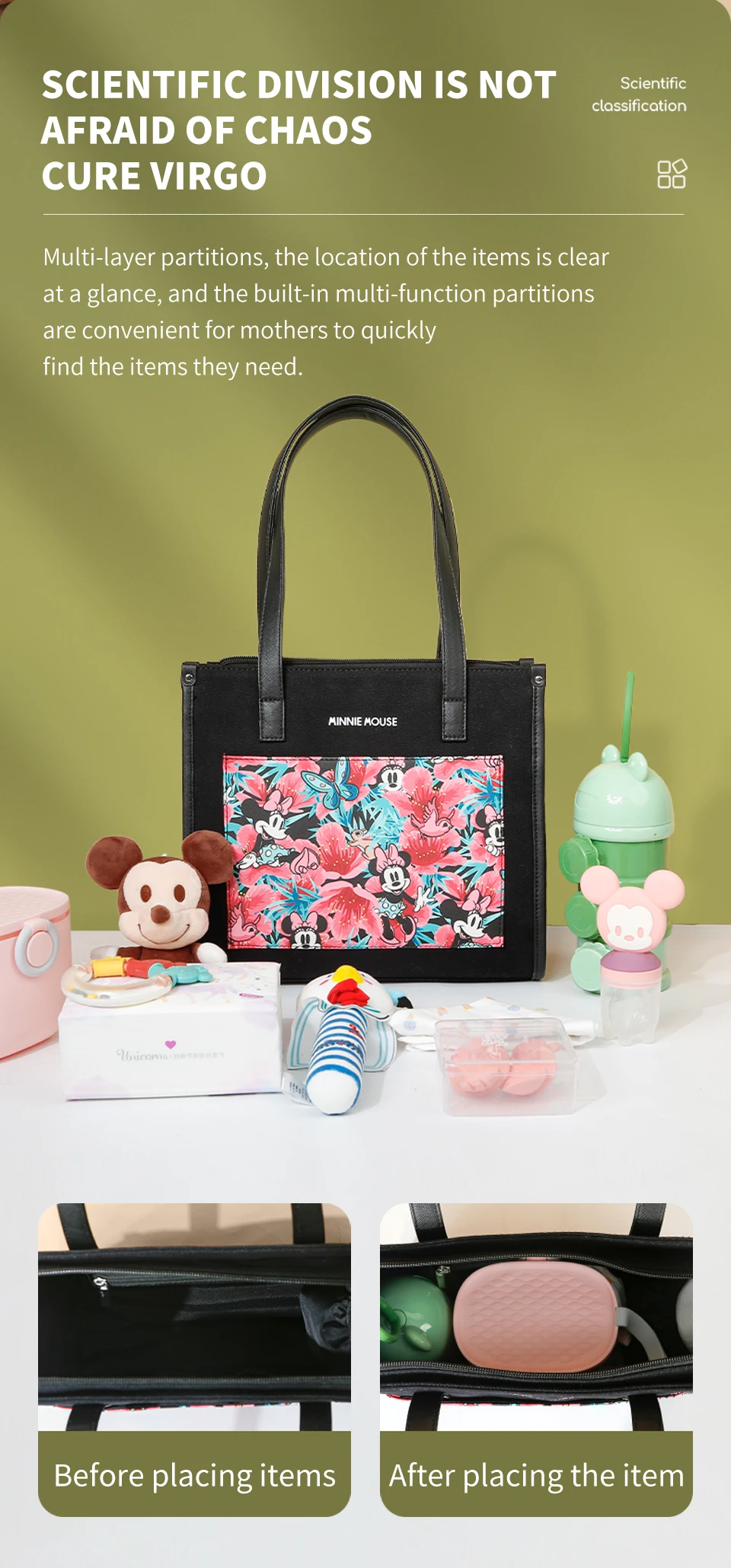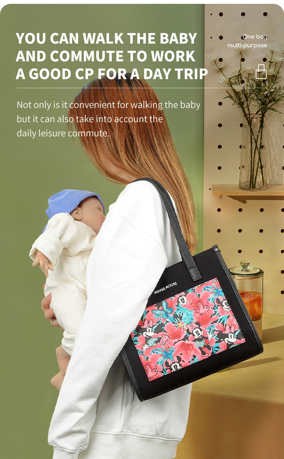 Disney nuova borsa per pannolini borsa cartone animato carino borsa per bambini tendenza moda borsa a tracolla da donna multifunzionale di grande capacità