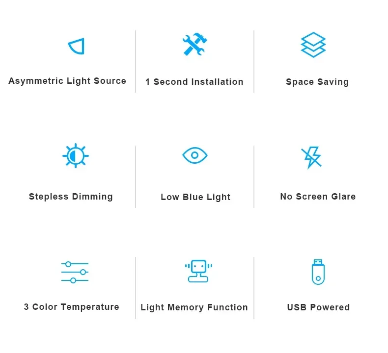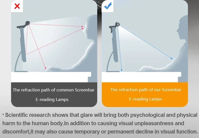 1.Luce del monitor del computer con design ottico asimmetrico, solo illumina la scrivania e elimina l’abbagliamento riflettente sullo schermo, protegge efficacemente i tuoi occhi nella vita quotidiana.