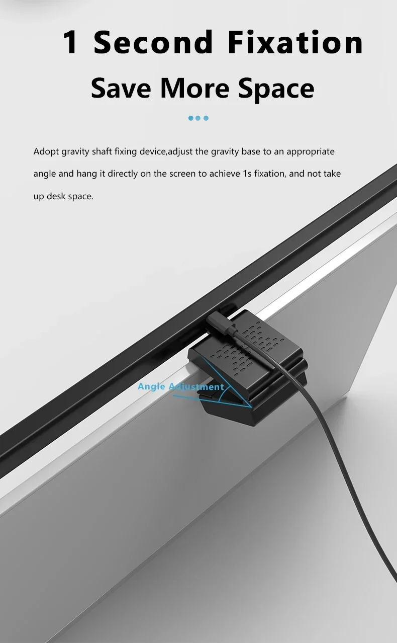 3.Una luce per monitor dal design salvaspazio, morsetto sulla parte superiore del monitor, rispetto a lampade da scrivania ordinarie, risparmiare spazio valioso sulla scrivania.