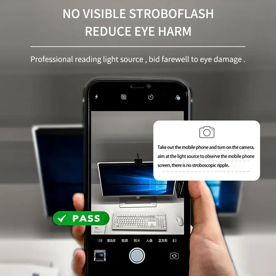 1.Luce del monitor del computer con design ottico asimmetrico, solo illumina la scrivania e elimina l’abbagliamento riflettente sullo schermo, protegge efficacemente i tuoi occhi nella vita quotidiana.