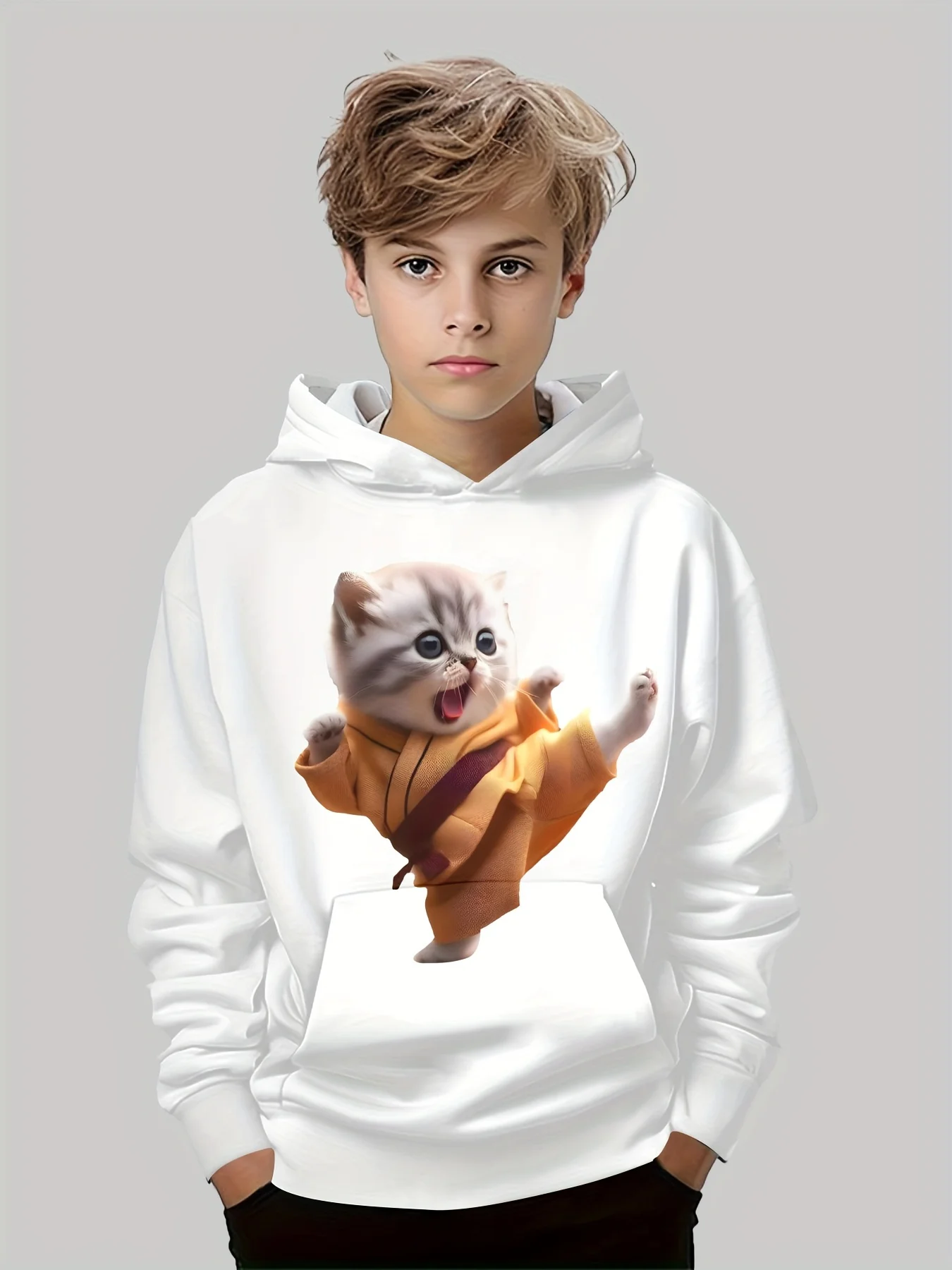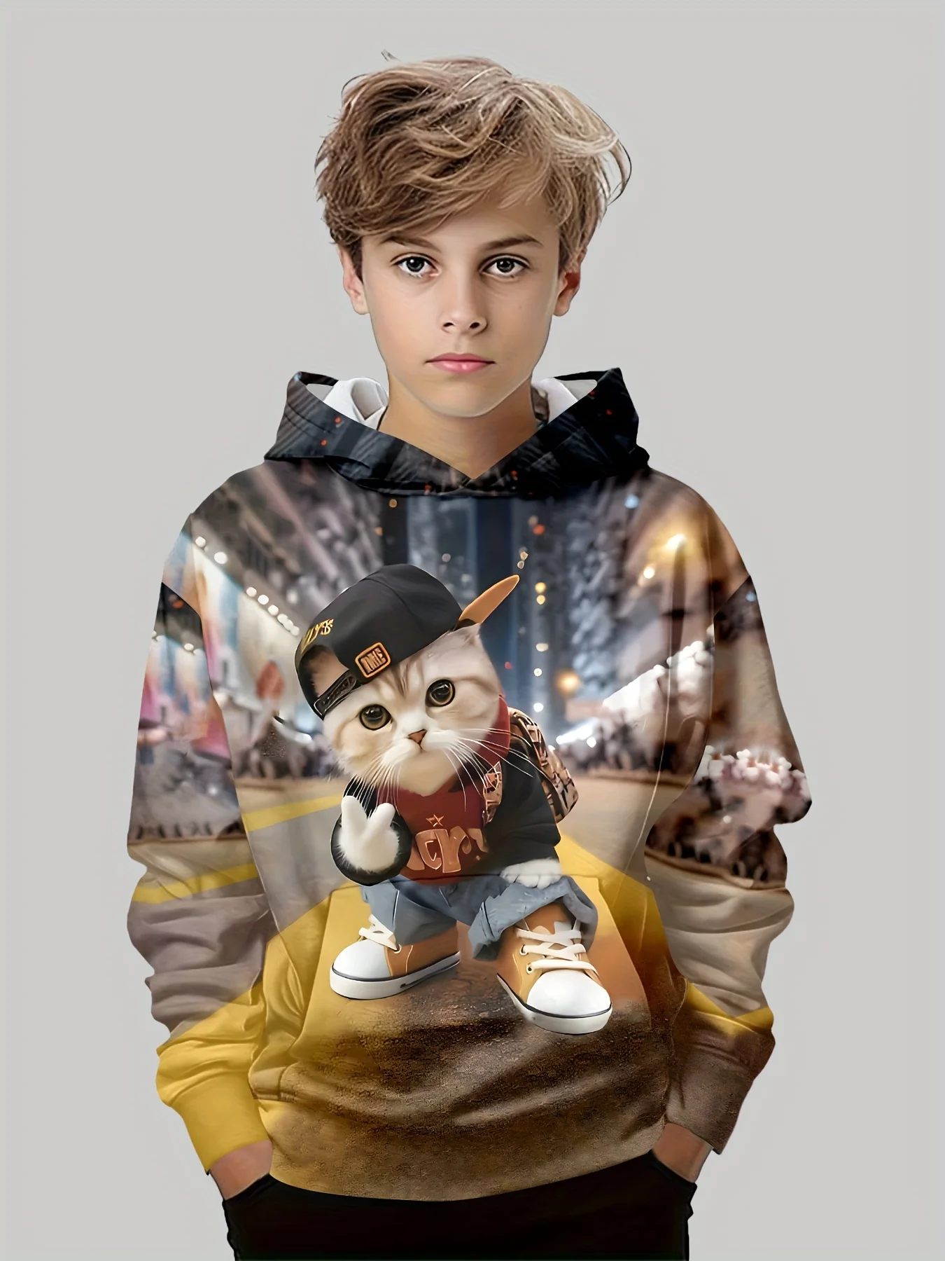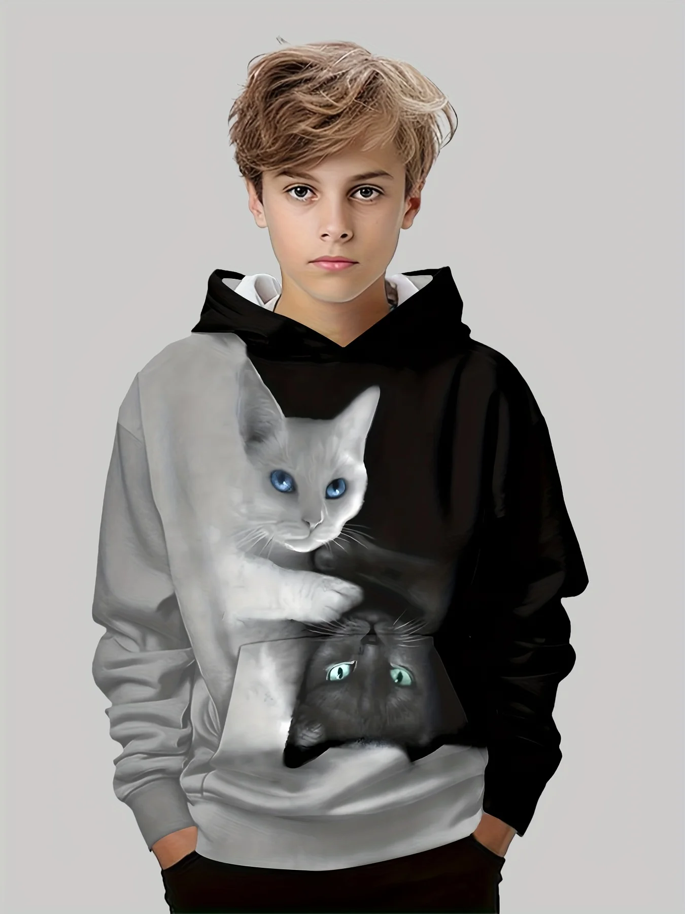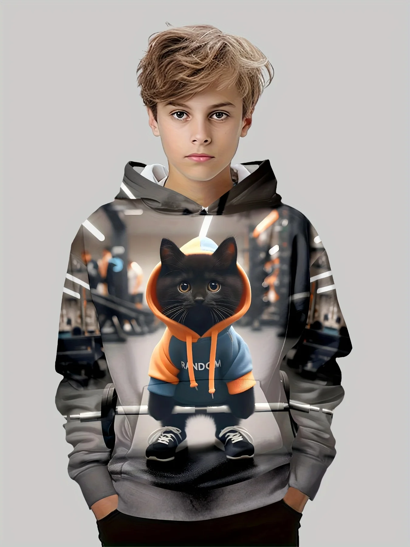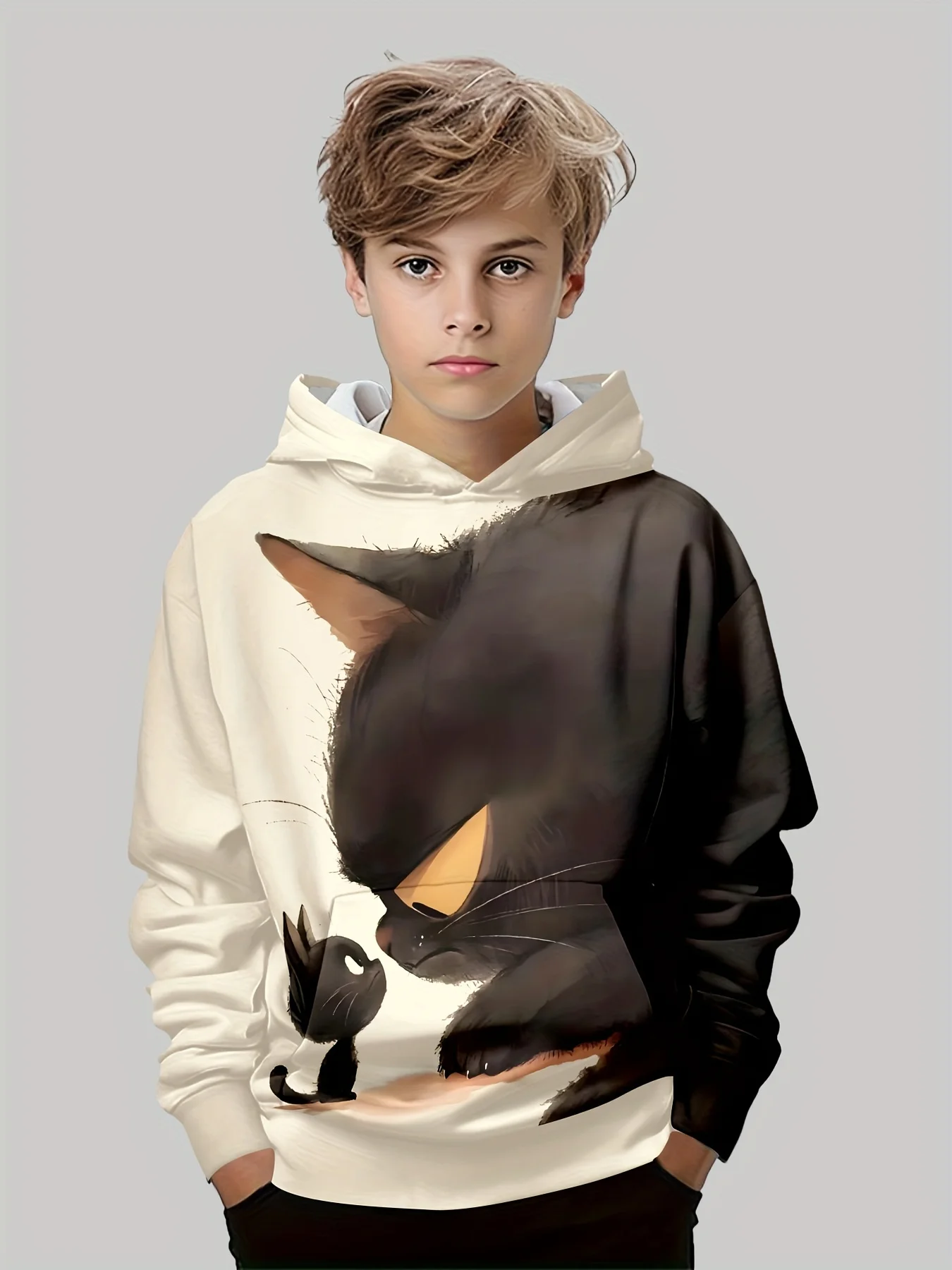 Divertente stampa 3d Abbigliamento per bambini Felpe con cappuccio Manica lunga Felpa da uomo Cartoon Ragazzi Tempo libero Moda Cat Print Felpa con cappuccio da ragazza