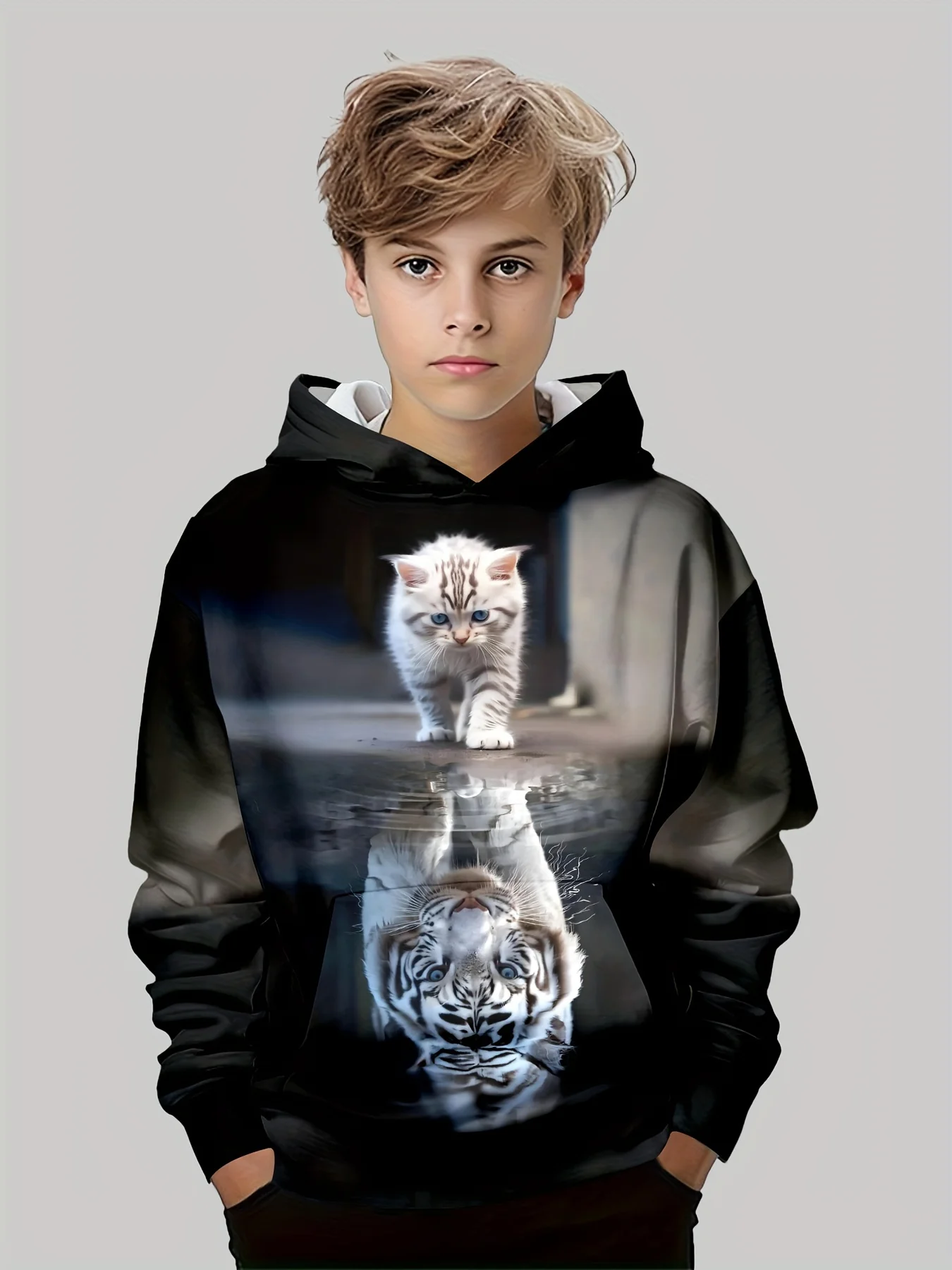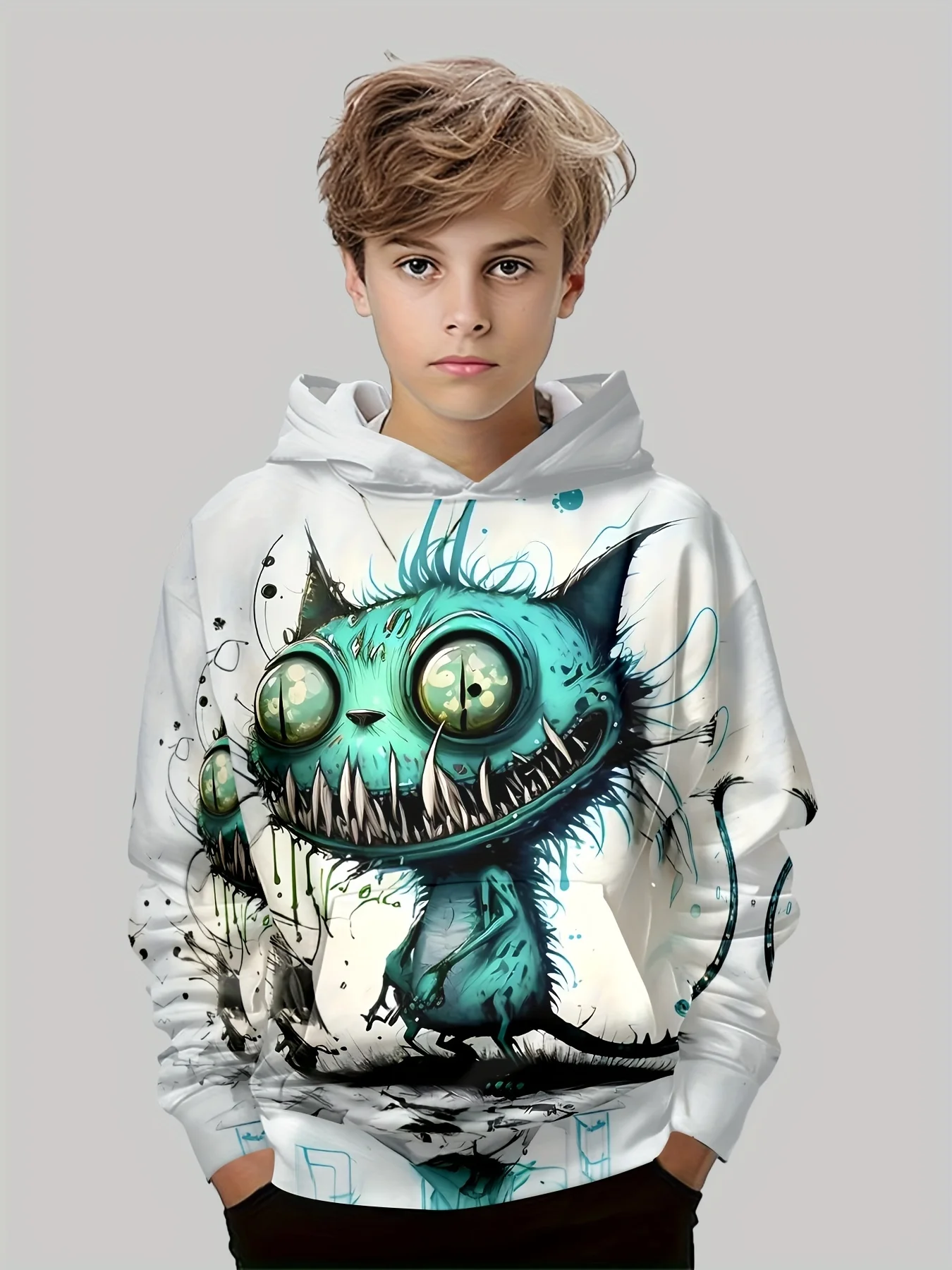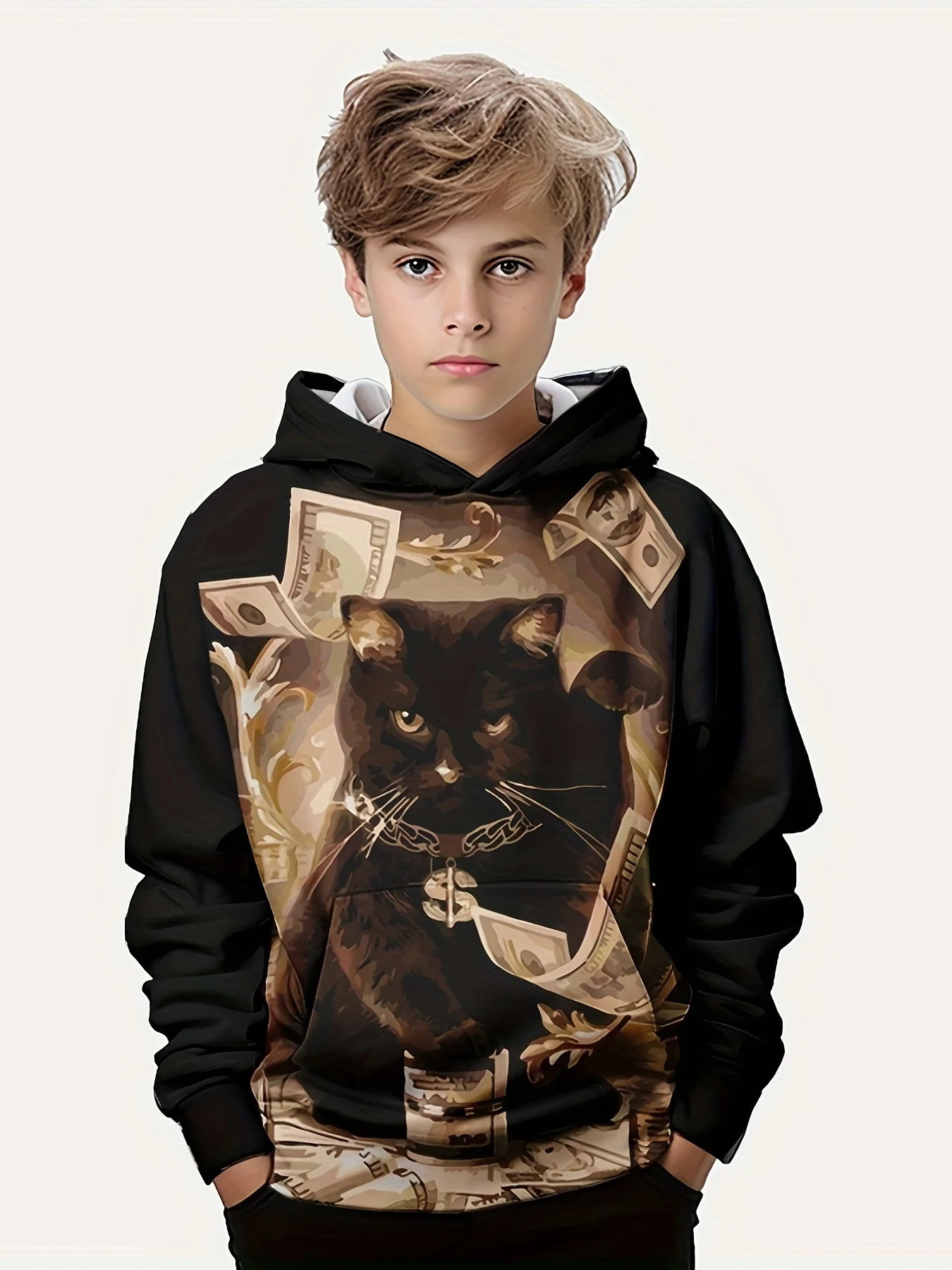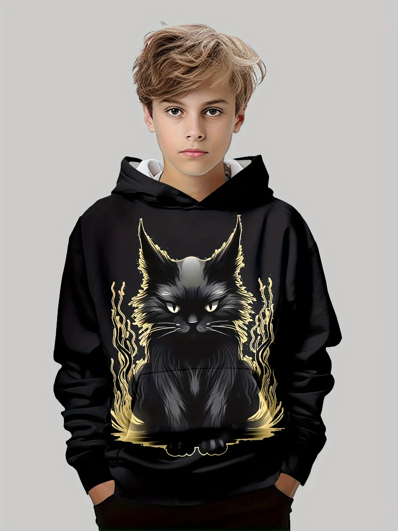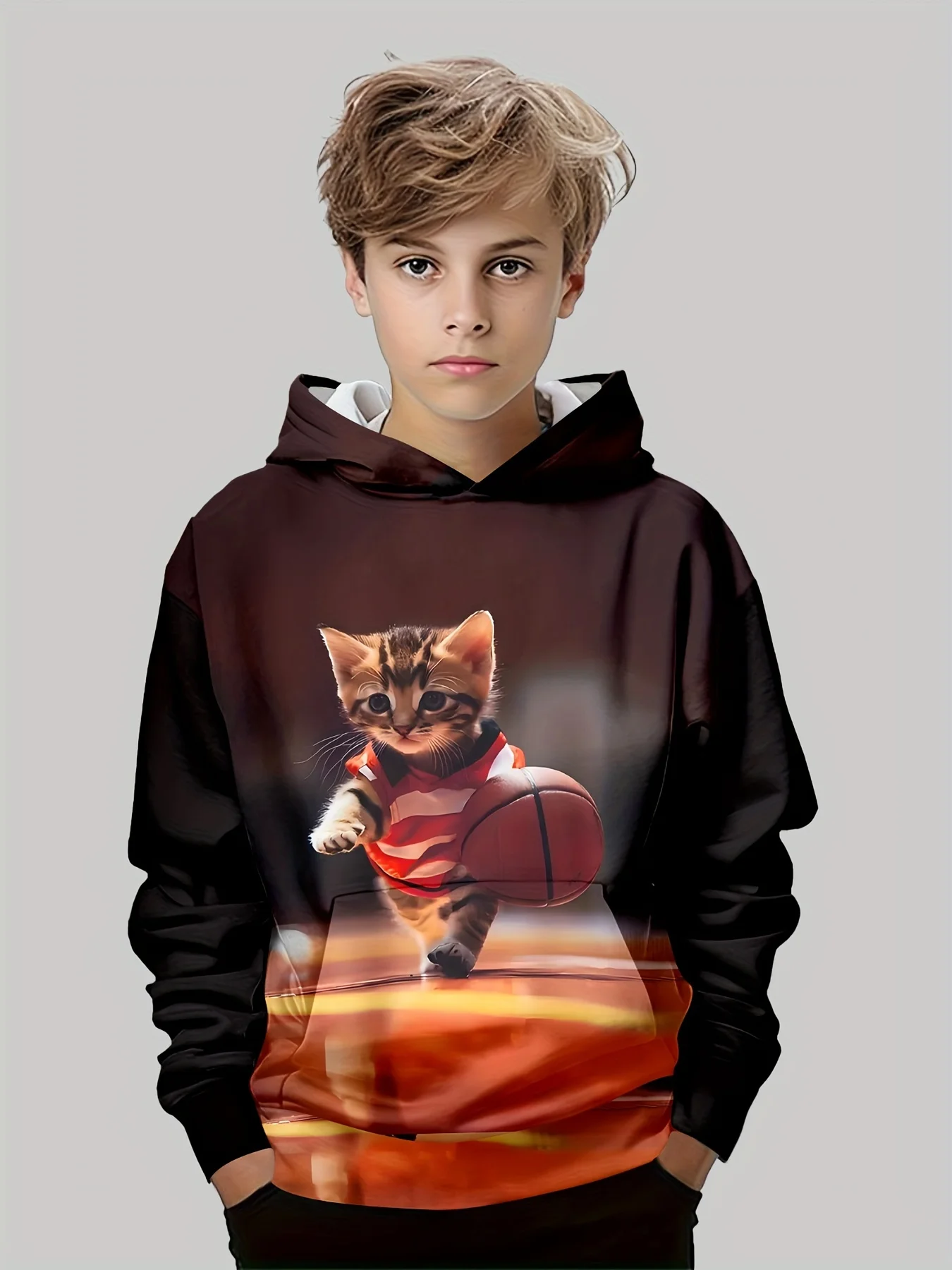 Divertente stampa 3d Abbigliamento per bambini Felpe con cappuccio Manica lunga Felpa da uomo Cartoon Ragazzi Tempo libero Moda Cat Print Felpa con cappuccio da ragazza