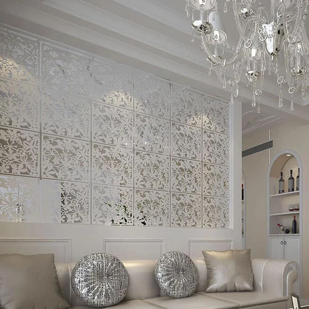 Schermo divisorio, 12 pezzi divisorio bianco realizzato in ABS con motivo a fiori cavi e uccelli, adesivo da parete in tela da appendere, fai da te, 40×40 cm