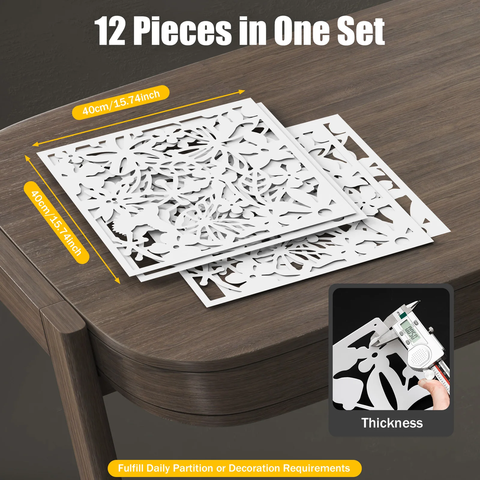 8 recensioni per Divisorio per stanza sospesa da 12 pezzi, pannello per schermo in PVC 40X40 cm con divisorio per schermo sospeso con fiori cavi per uccelli e fiori di farfalla