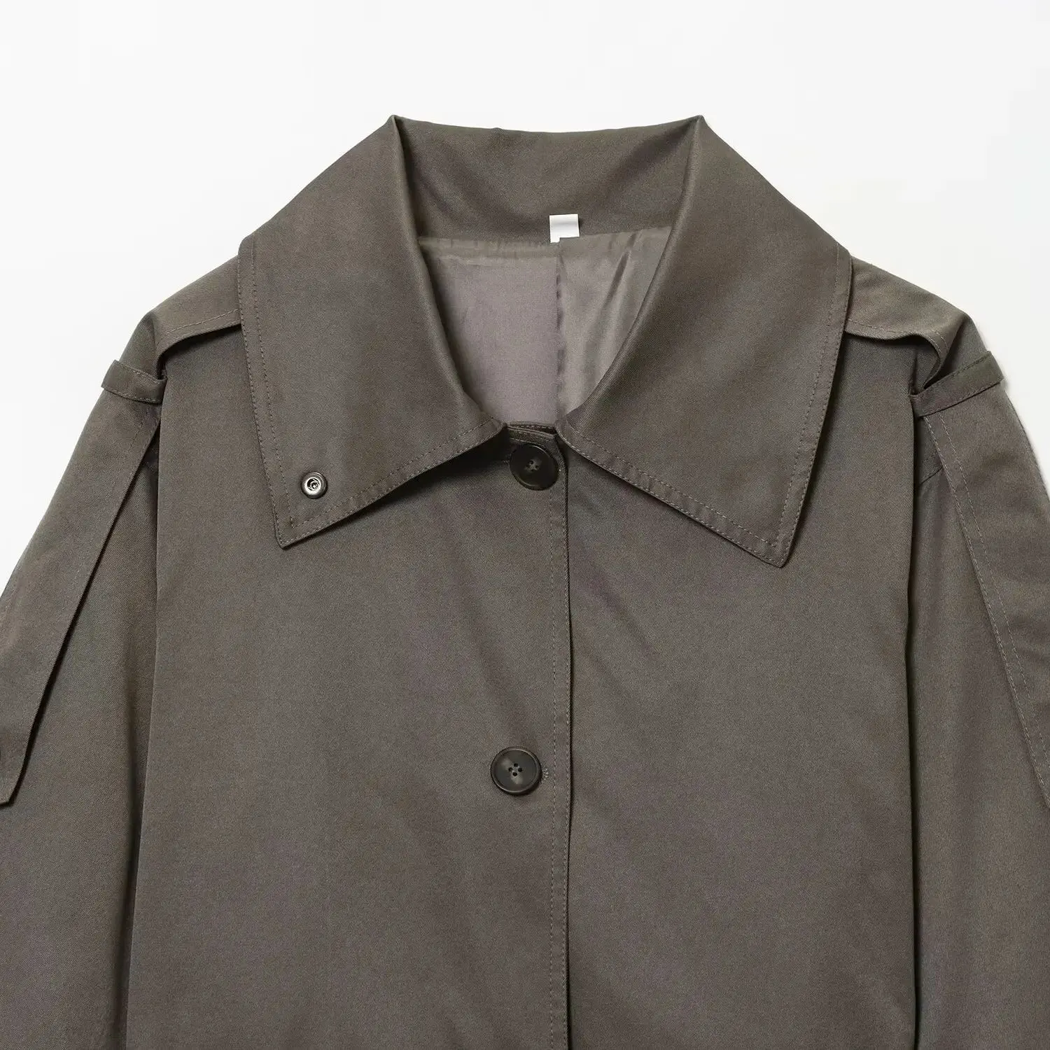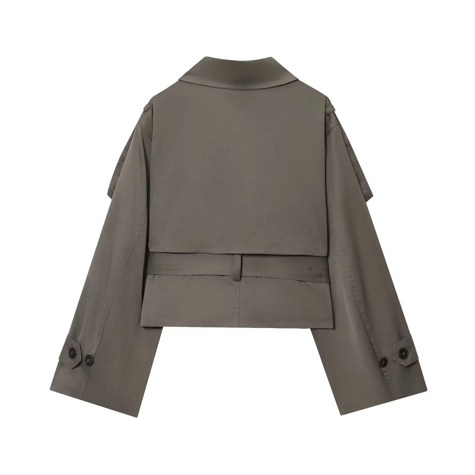 DiYiG DONNA 2025 autunno nuova moda con cintura corta comoda giacca a vento retrò manica lunga tutto-fiammifero cappotto Capispalla Mujer