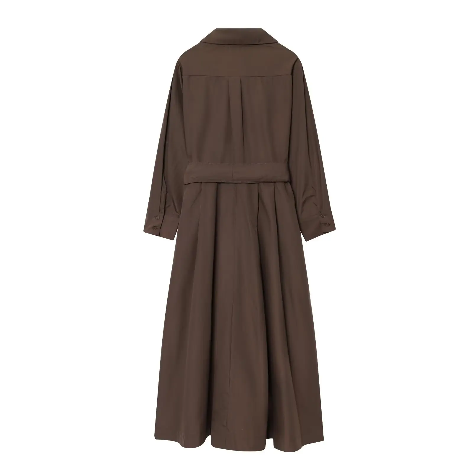 DiYiG DONNA 2025 Inverno Nuova Moda con Cintura Abito a Maniche Lunghe Chic Tasca Drappeggiato Abito Sottile Abiti Mujer