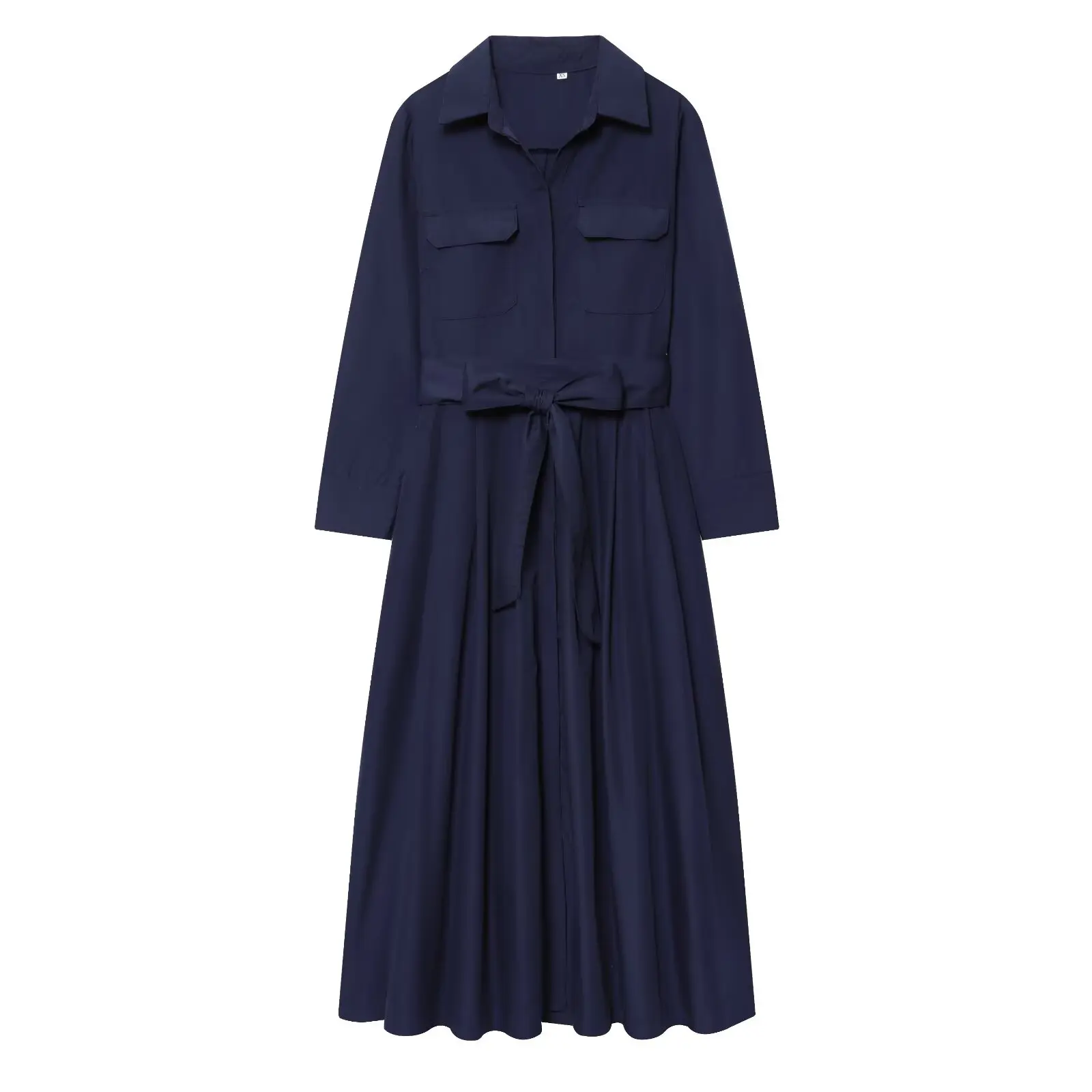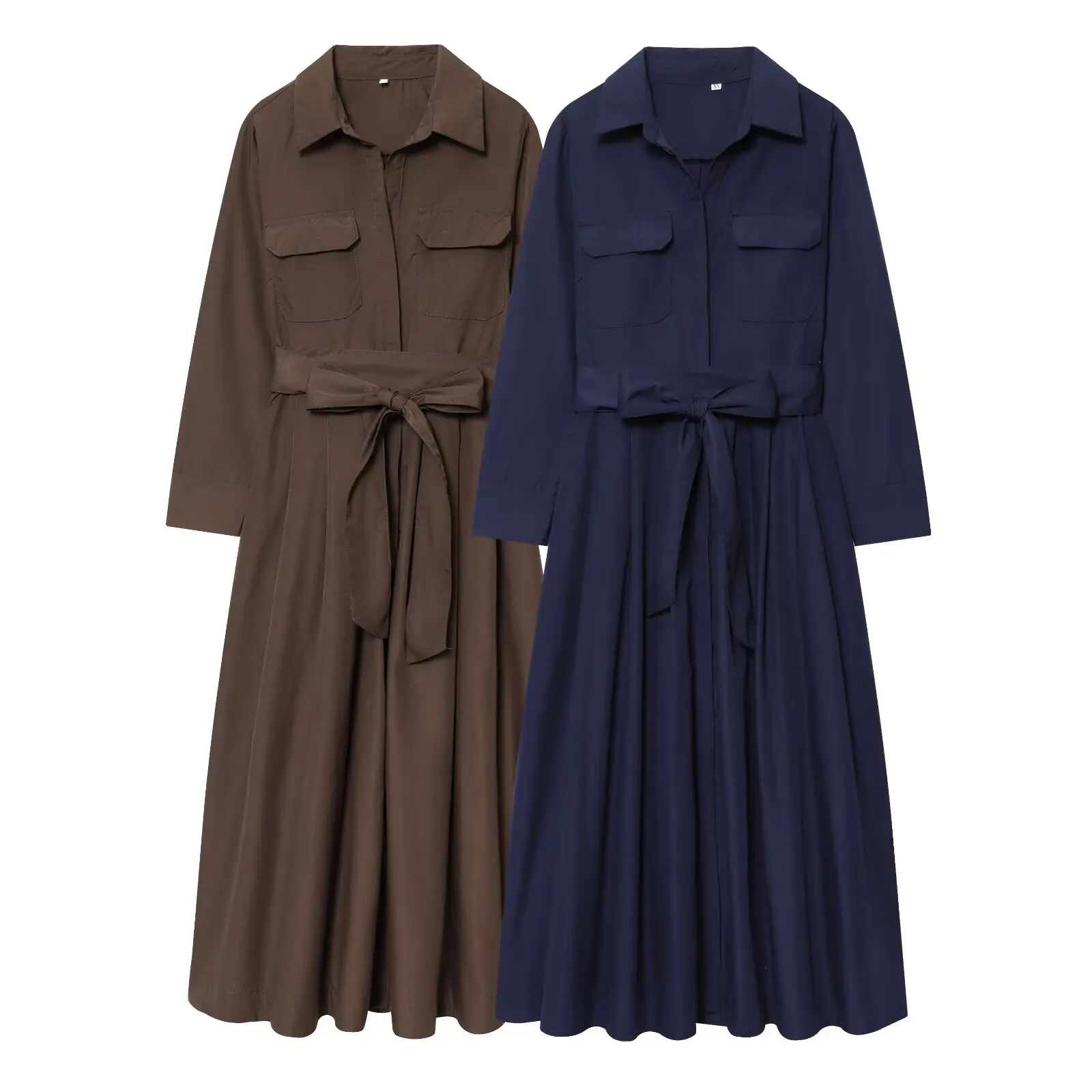 Primavera e autunno nuovi abiti da donna moda temperamento pendolarismo elegante tinta unita plus size abito con maniche a sette quarti