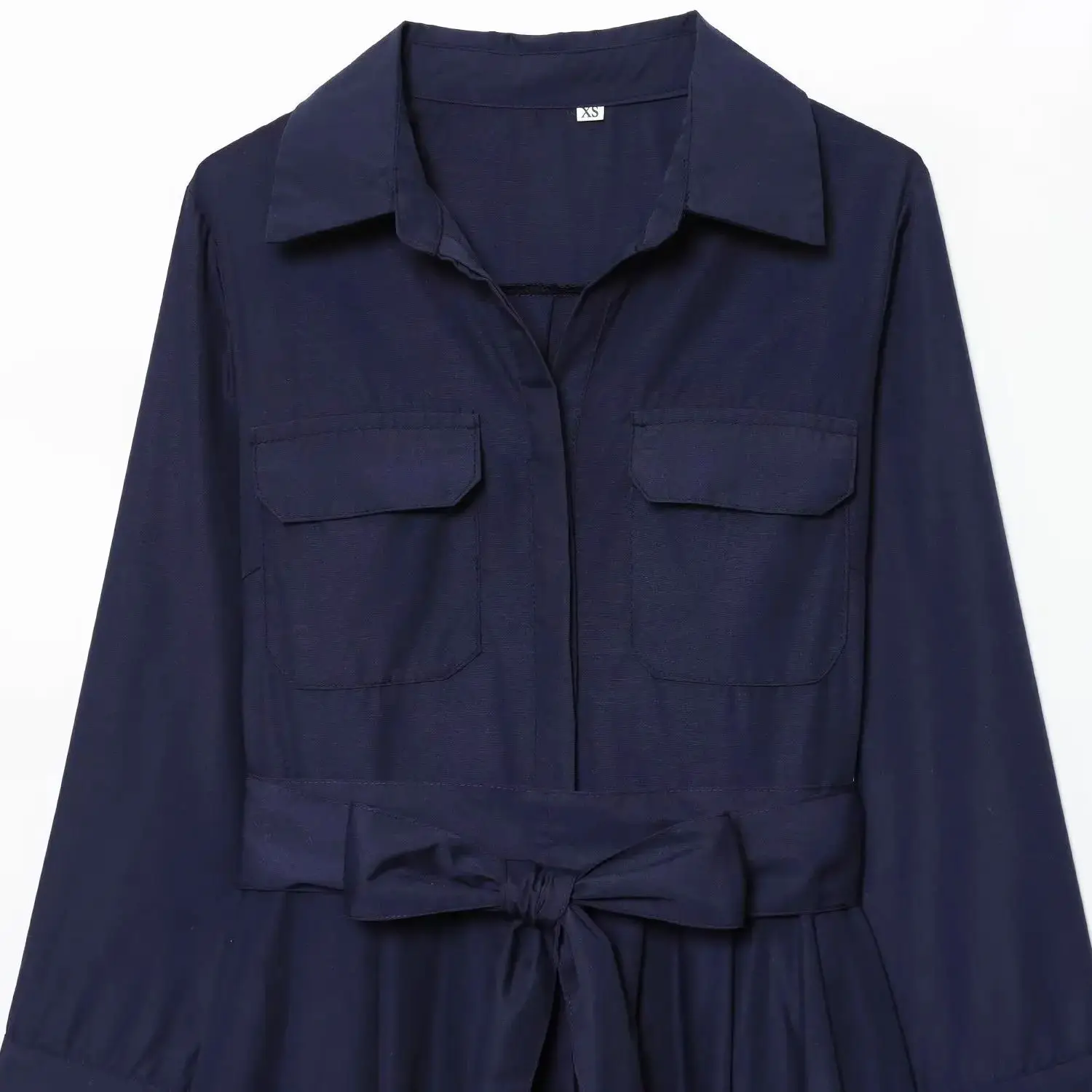 DiYiG DONNA 2025 Inverno Nuova Moda con Cintura Abito a Maniche Lunghe Chic Tasca Drappeggiato Abito Sottile Abiti Mujer