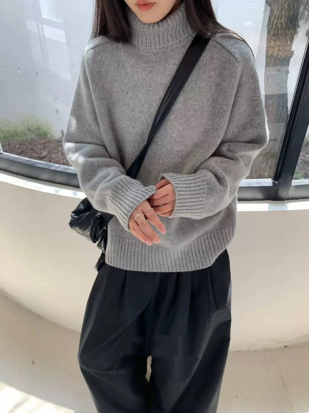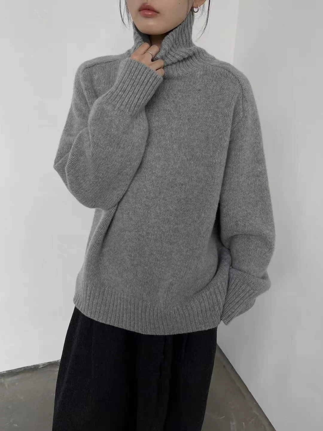 Con il suo colletto mezzo alto e il design ampio, questo maglione passa perfettamente dalle uscite informali agli ambienti più formali.