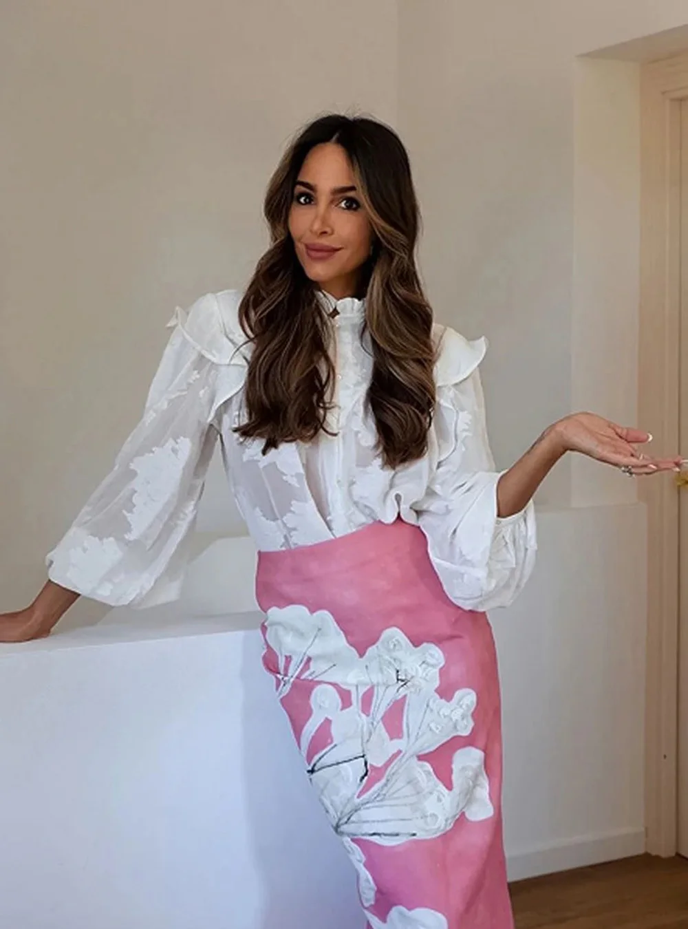 Gonna aderente in pizzo con scollo a V a maniche lunghe stampata slim fit da donna Incontri Abito autunnale versatile ed elegante stile pendolarismo