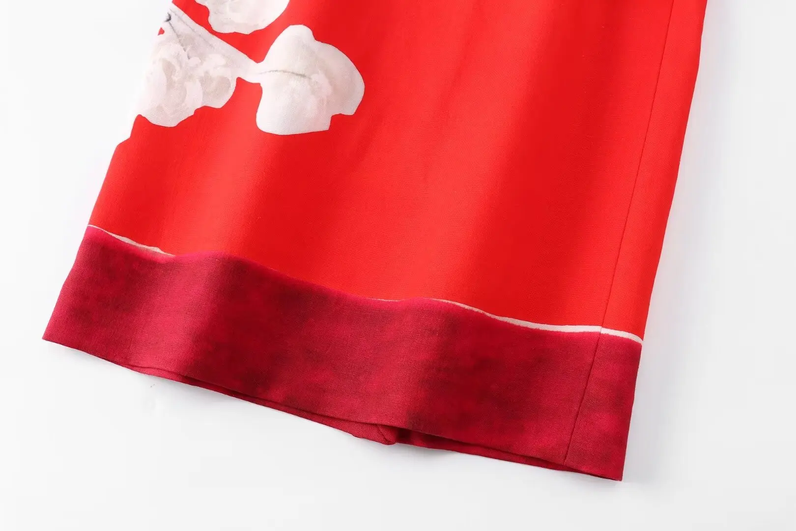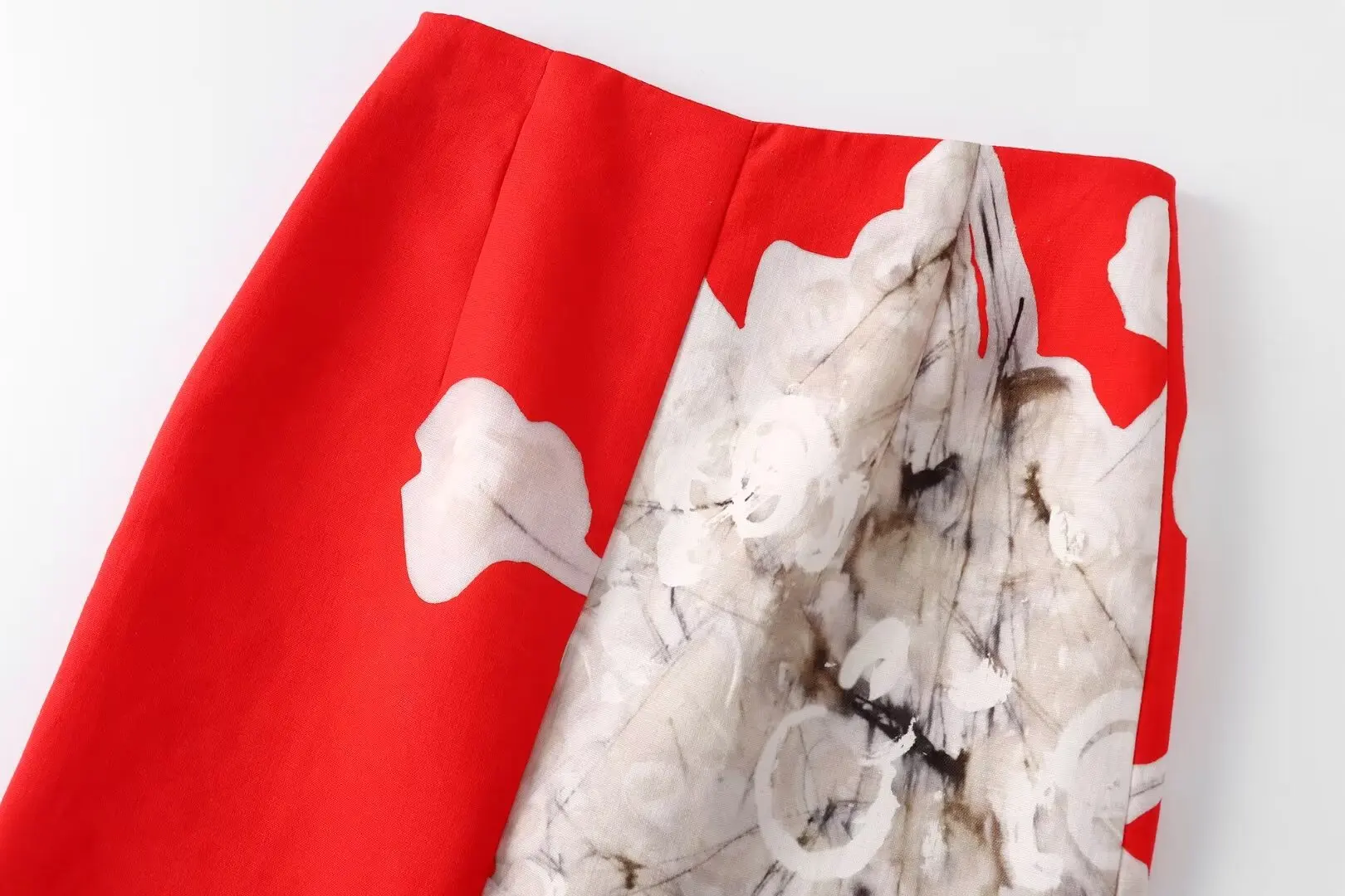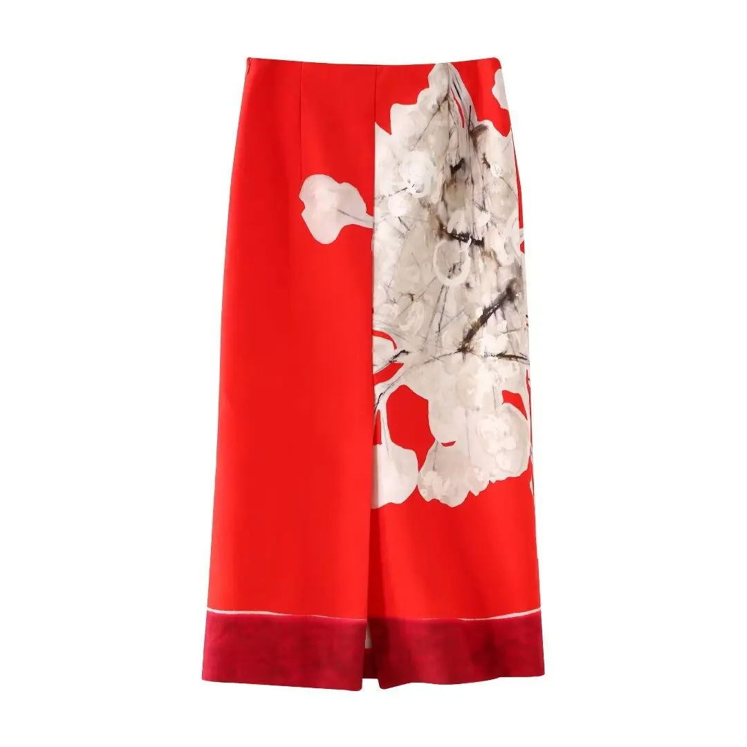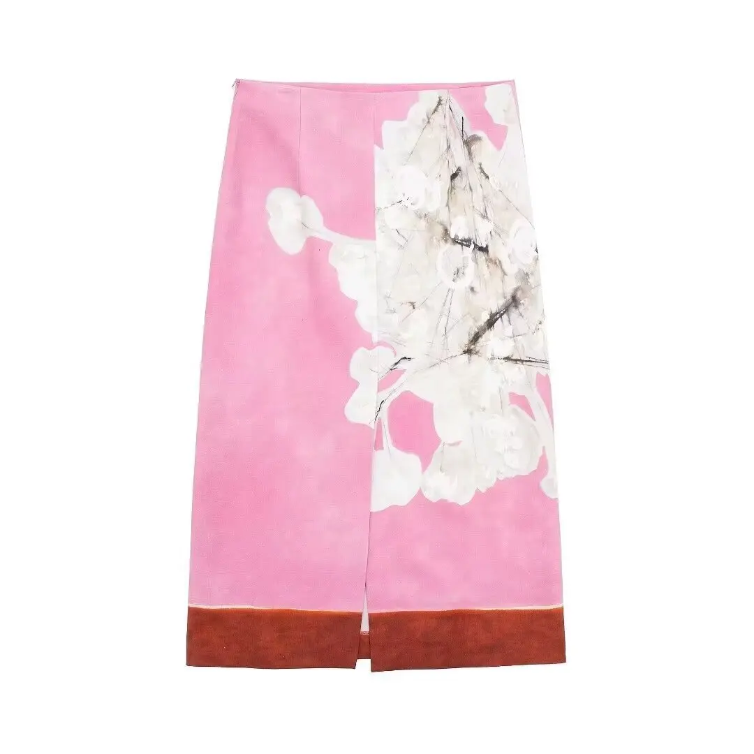 Donna Elegante stile cinese Stampa floreale Gonna A-line Cerniera a vita alta Fessura Cerniera anca vacanza Gonna bustier donna