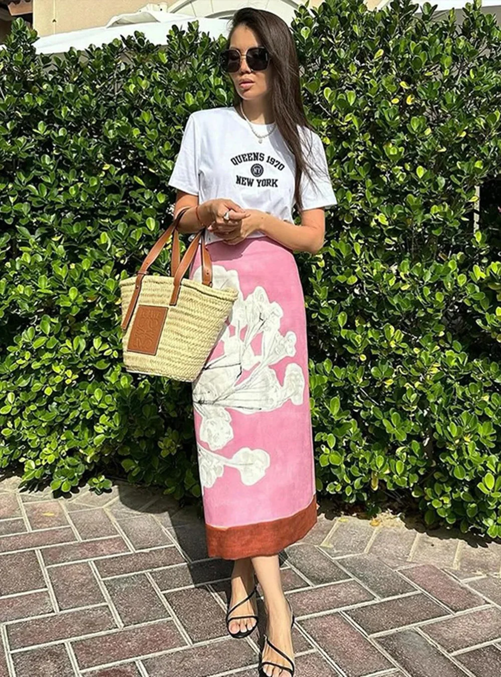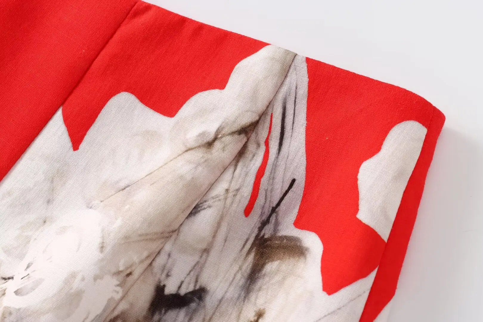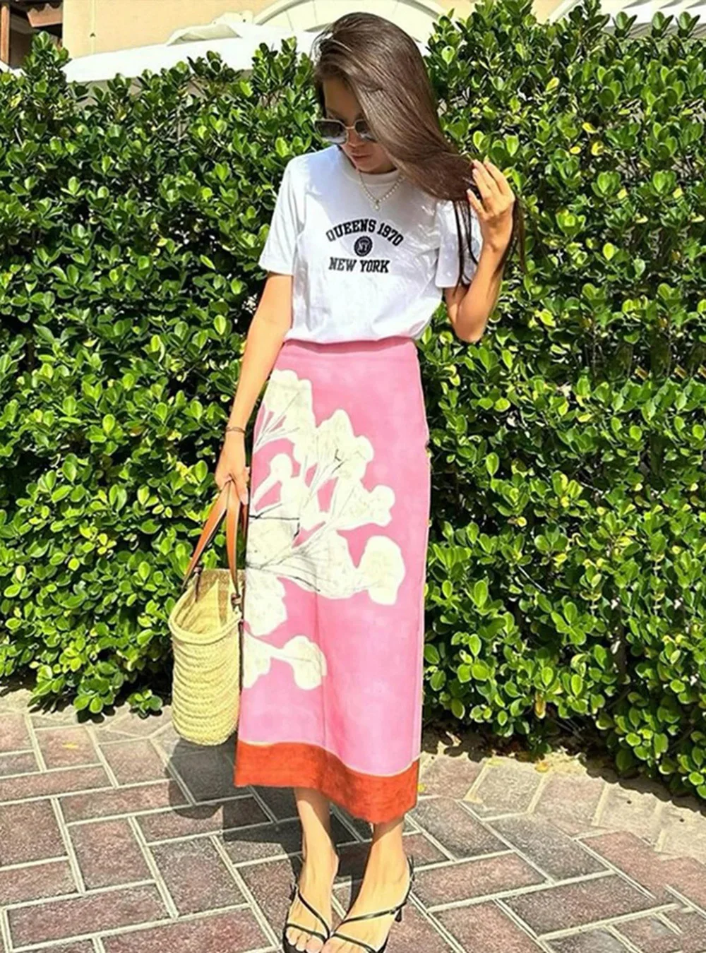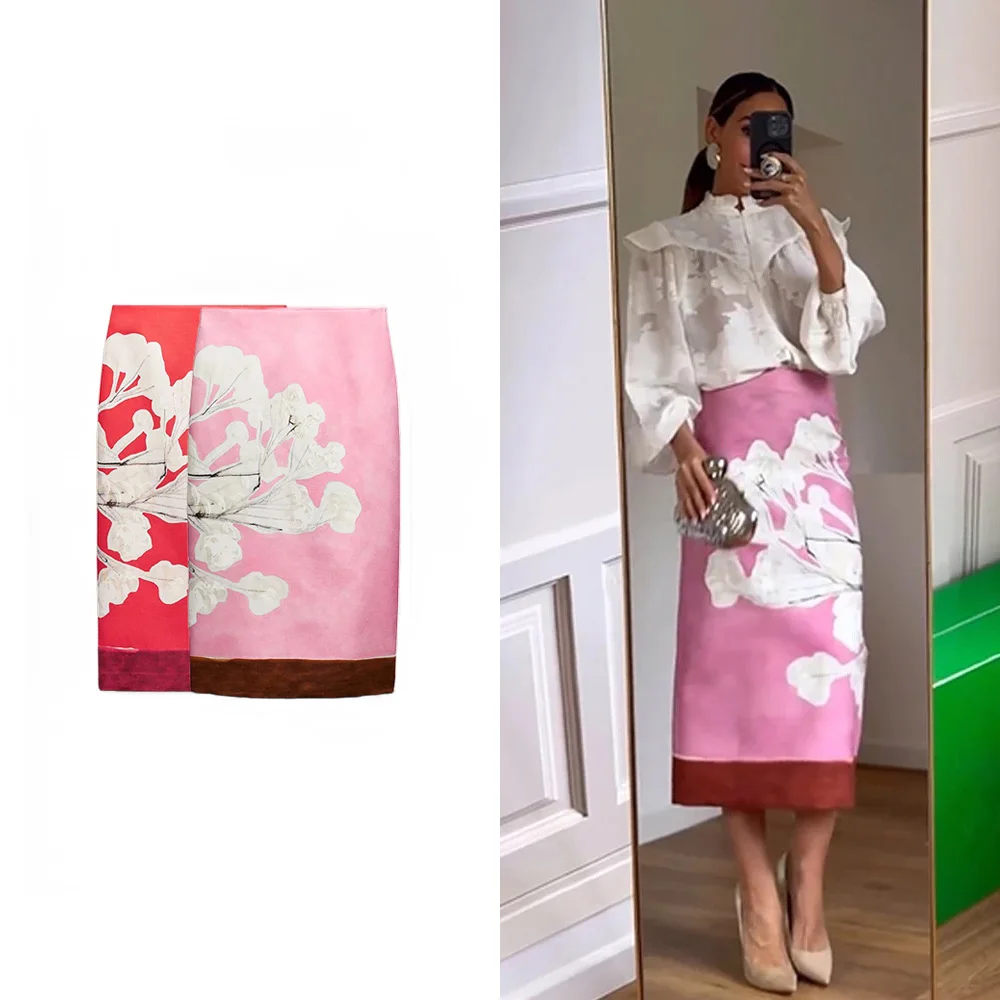 Donna Elegante stile cinese Stampa floreale Gonna A-line Cerniera a vita alta Fessura Cerniera anca vacanza Gonna bustier donna