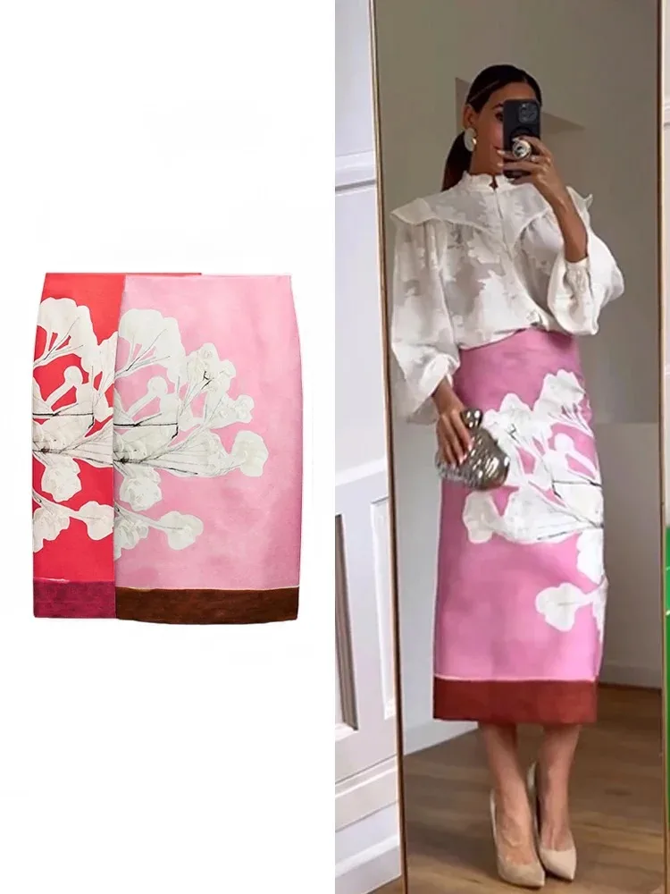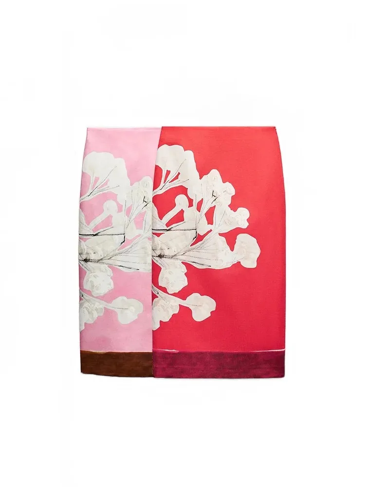 Donna Elegante stile cinese Stampa floreale Gonna A-line Cerniera a vita alta Fessura Cerniera anca vacanza Gonna bustier donna