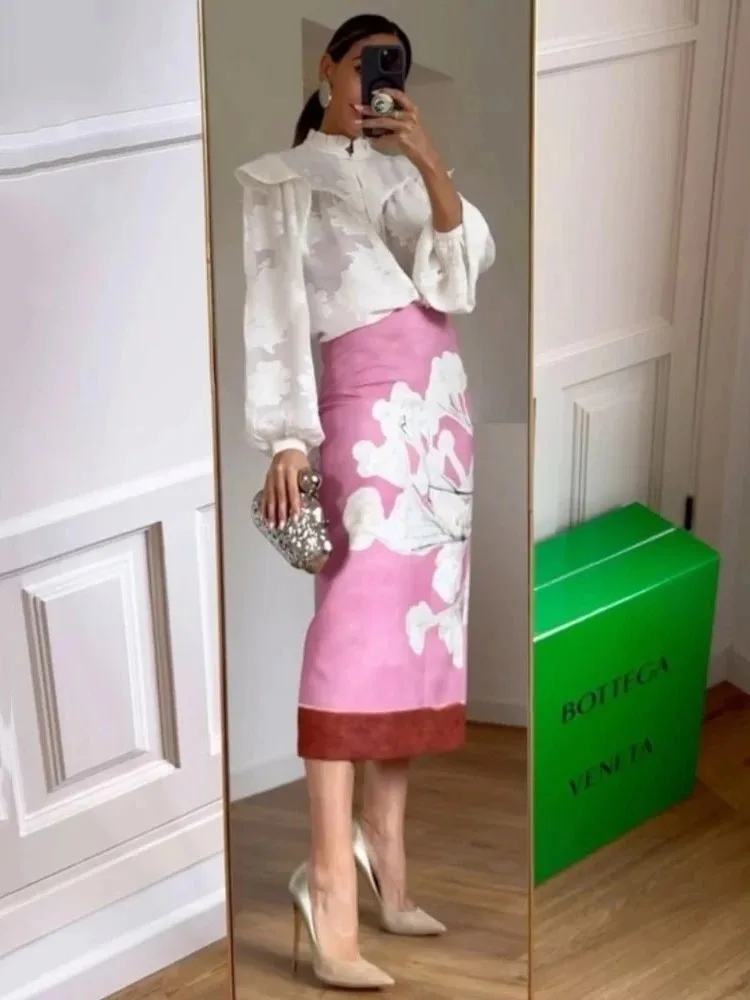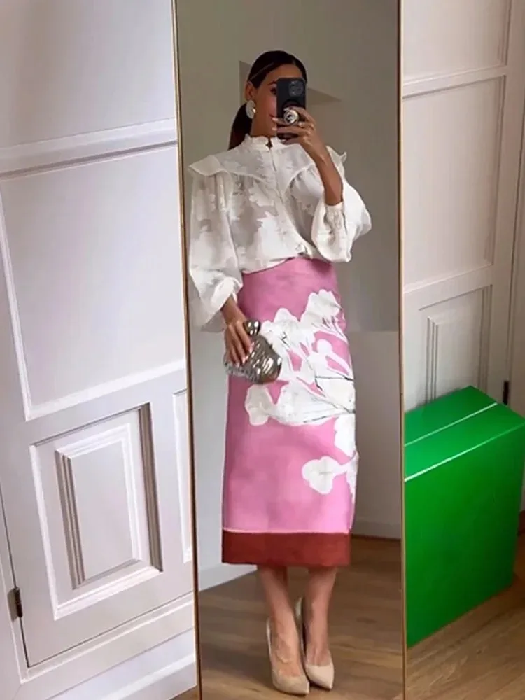 Gonna aderente in pizzo con scollo a V a maniche lunghe stampata slim fit da donna Incontri Abito autunnale versatile ed elegante stile pendolarismo