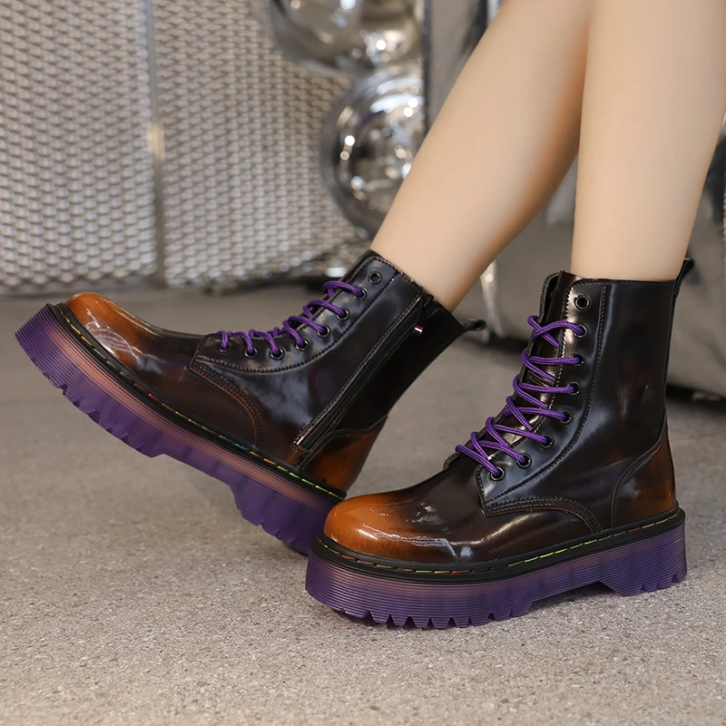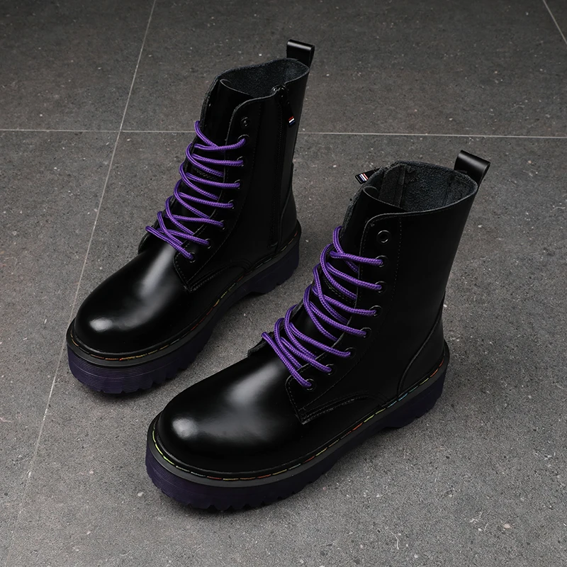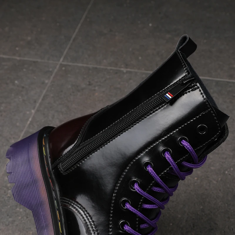 Donna uomo aumento stivali 2022 moda vera pelle stivaletti viola per donna Casual moto scarpe di lusso inverno caldo