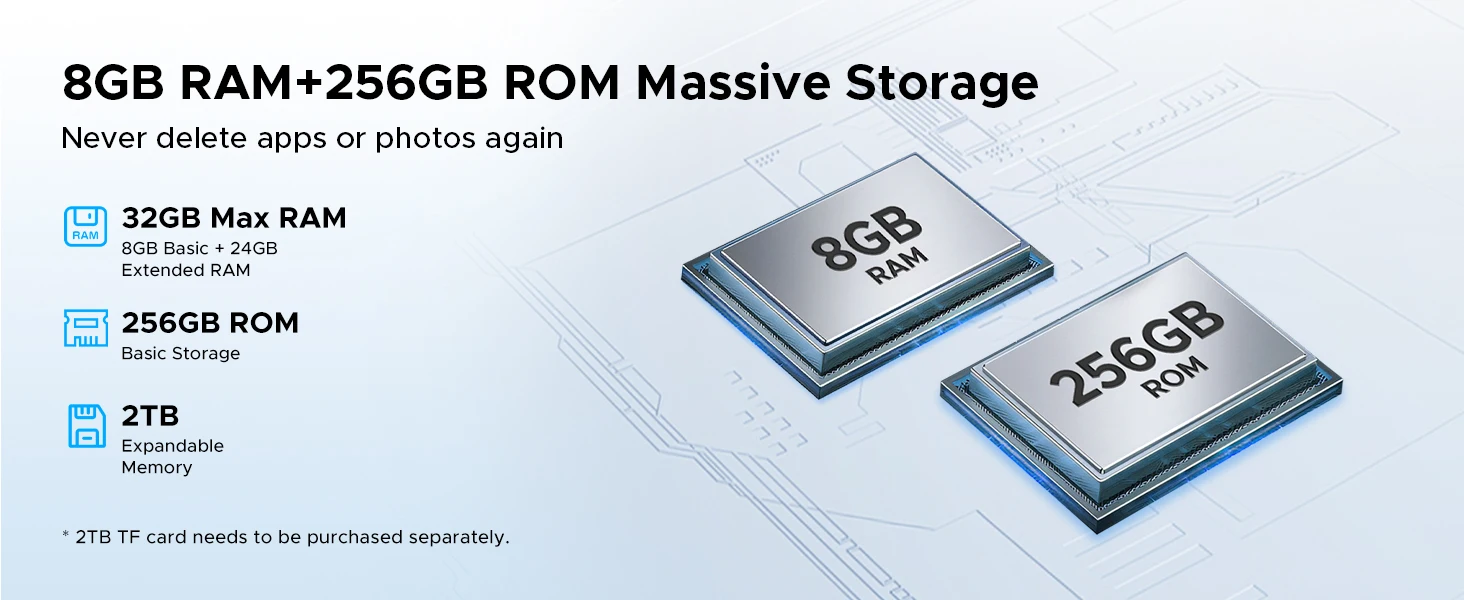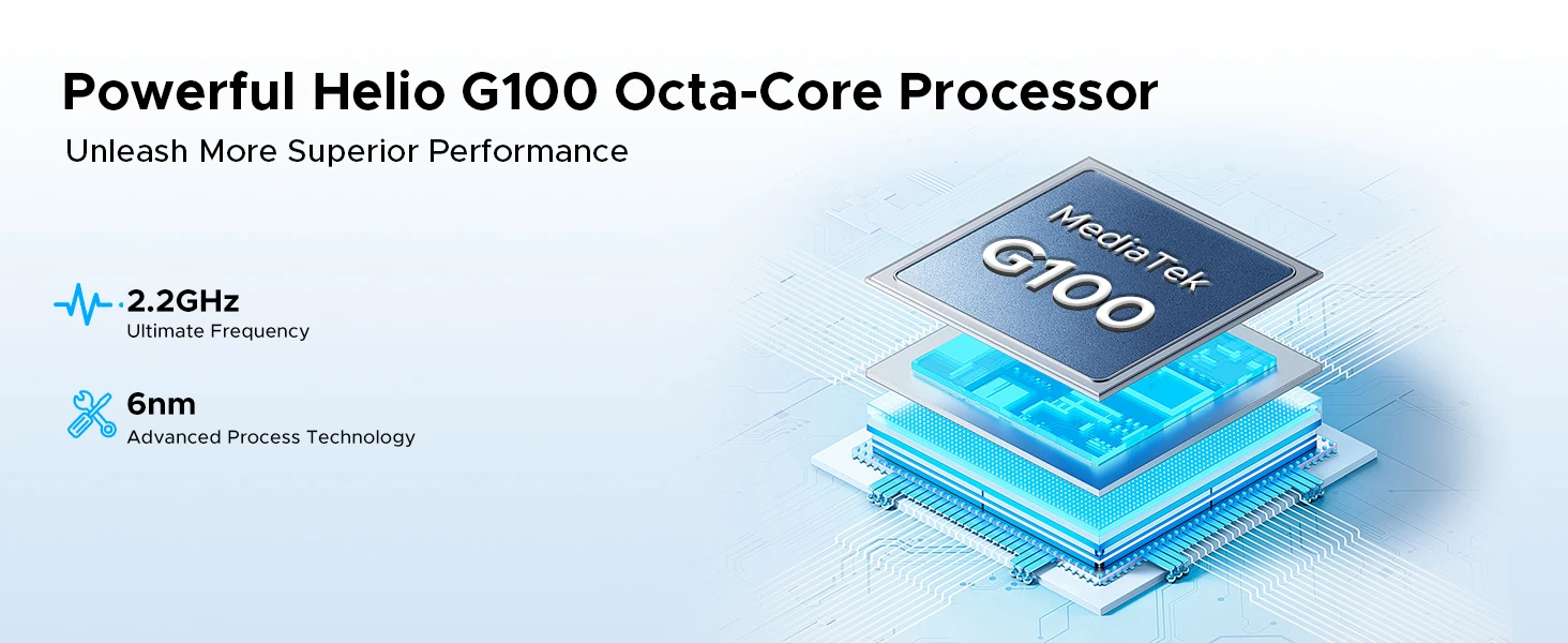 Processore Helio G100 Octa-Core| 8 GB di RAM+256 GB di ROM