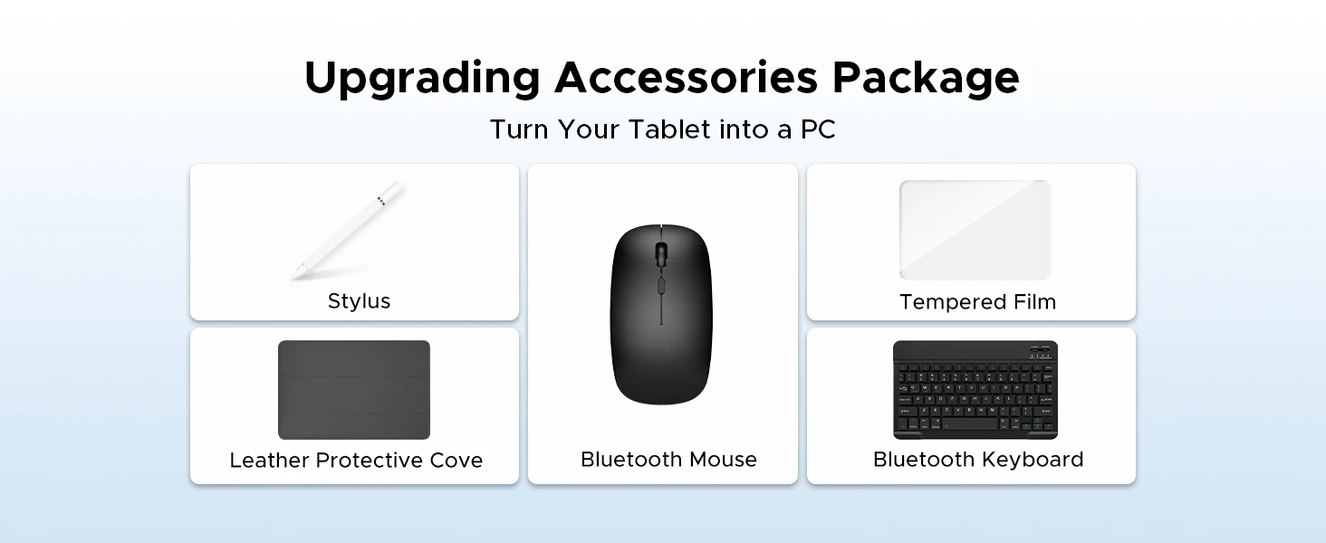 Se scegliere il set completo nero/set completo grigio/set completo blu, viene fornito con tablet, tastiera, mouse, ecc. seguendo, leggere con attenzione prima dell’ordine, buon acquisto.
