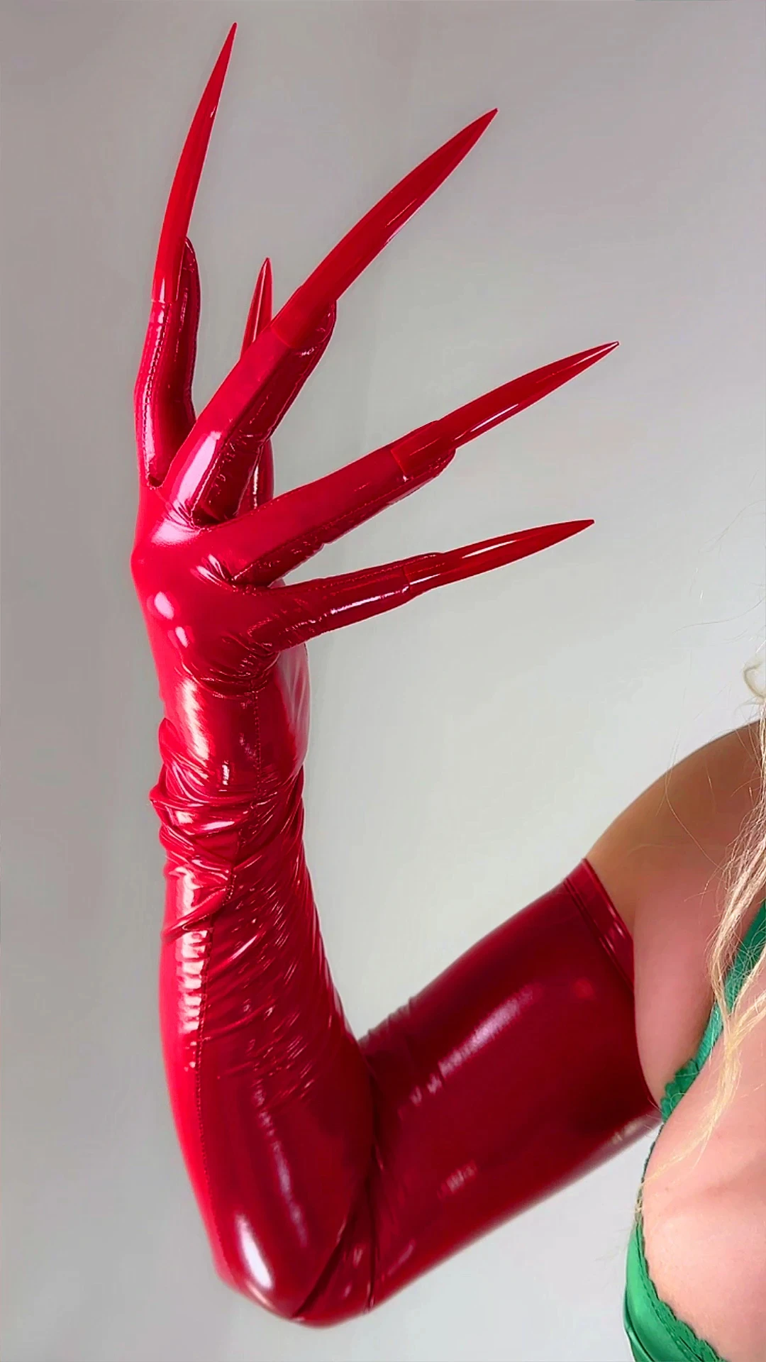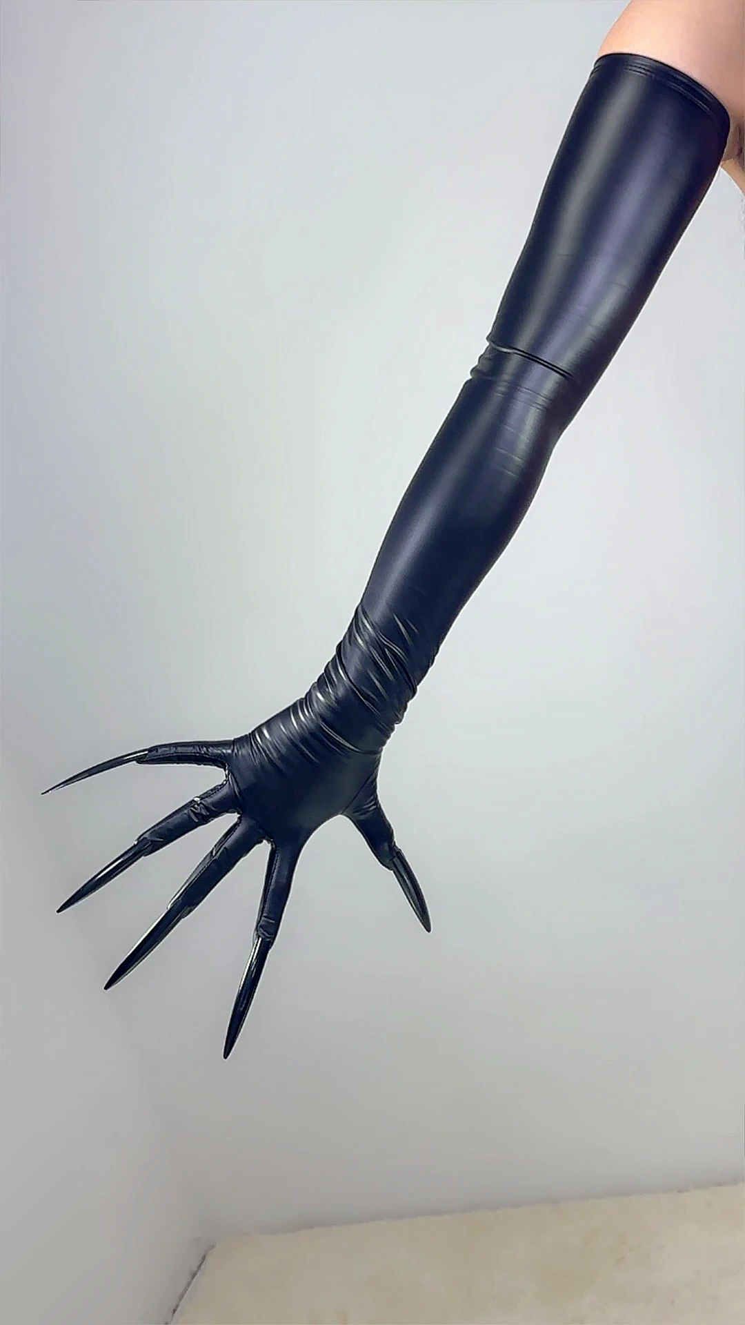 Nessun rivestimento. Guanti lunghi 70 cm, chiodi lunghi 10 cm.