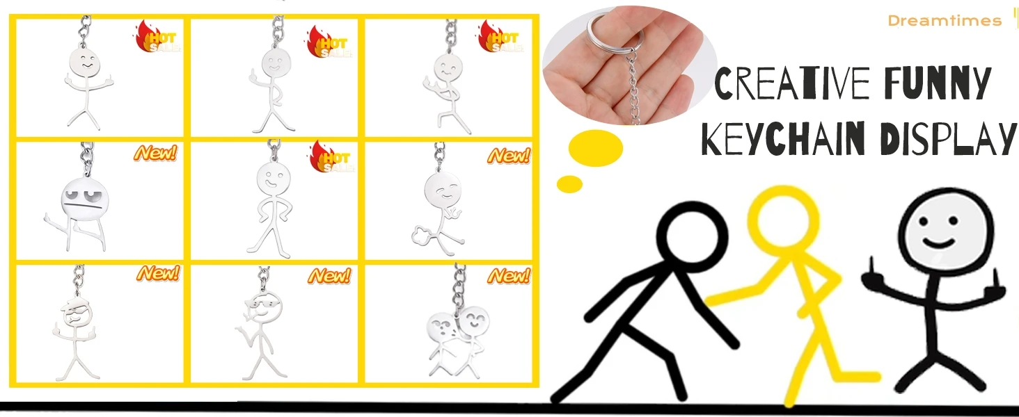 Dreamtimes Divertente Doodle Portachiavi Graffiti Acciaio inossidabile Dito medio Stickman Uomo Portachiavi con ciondolo Gioielli Coppie Hip-hop