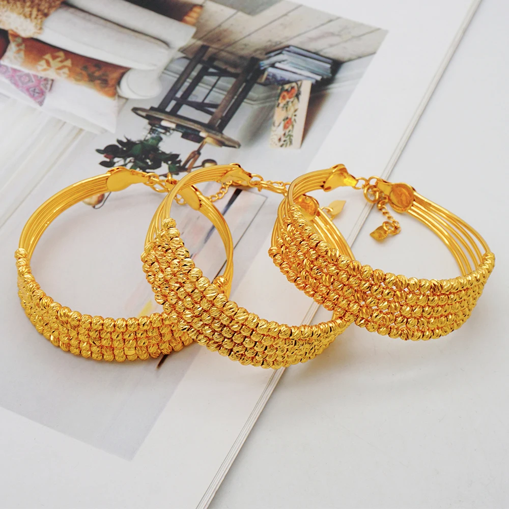 Dubai Donna Braccialetti color oro Bracciale sottile Braccialetti etiopi Gioielli africani Gioielli da sposa arabi sauditi Regali per la sposa