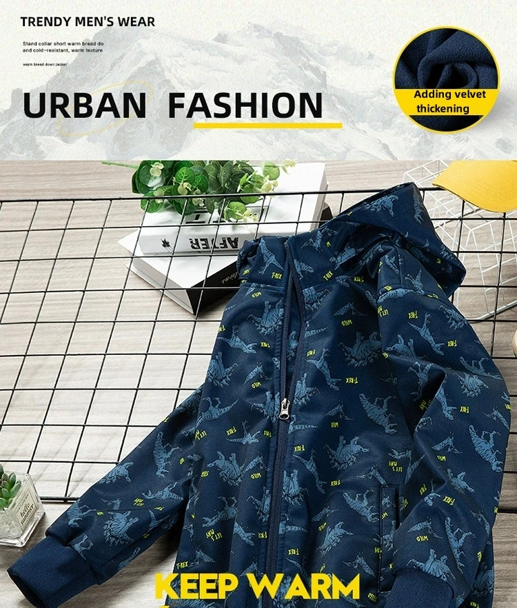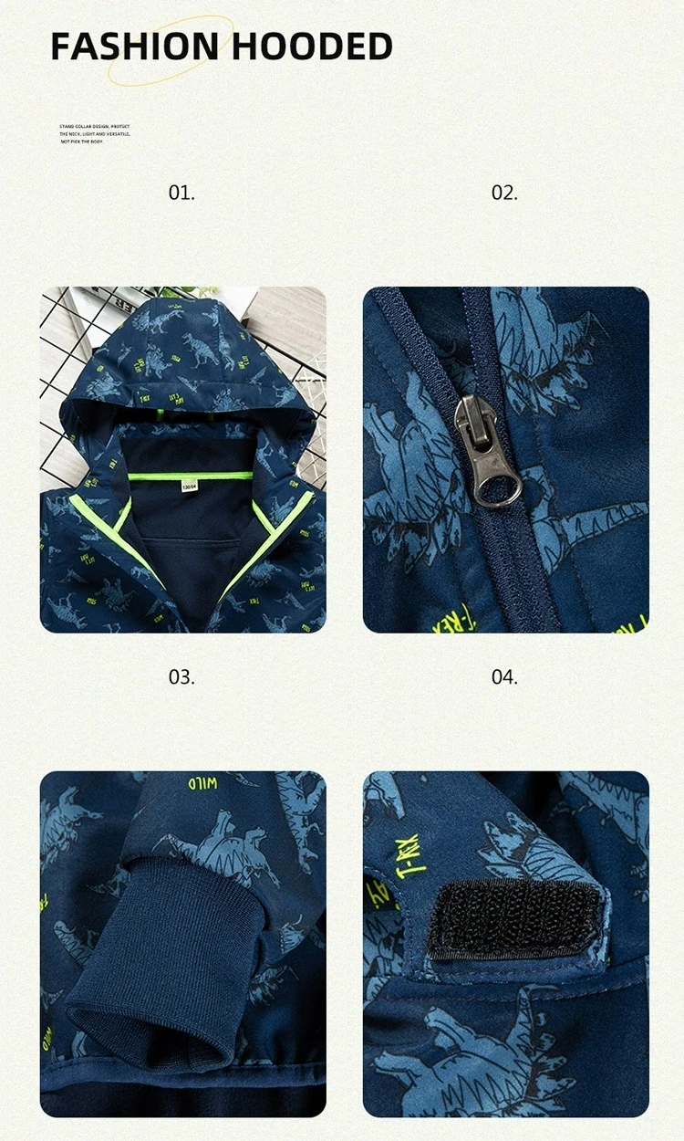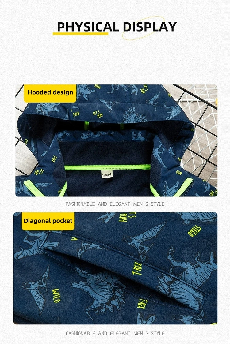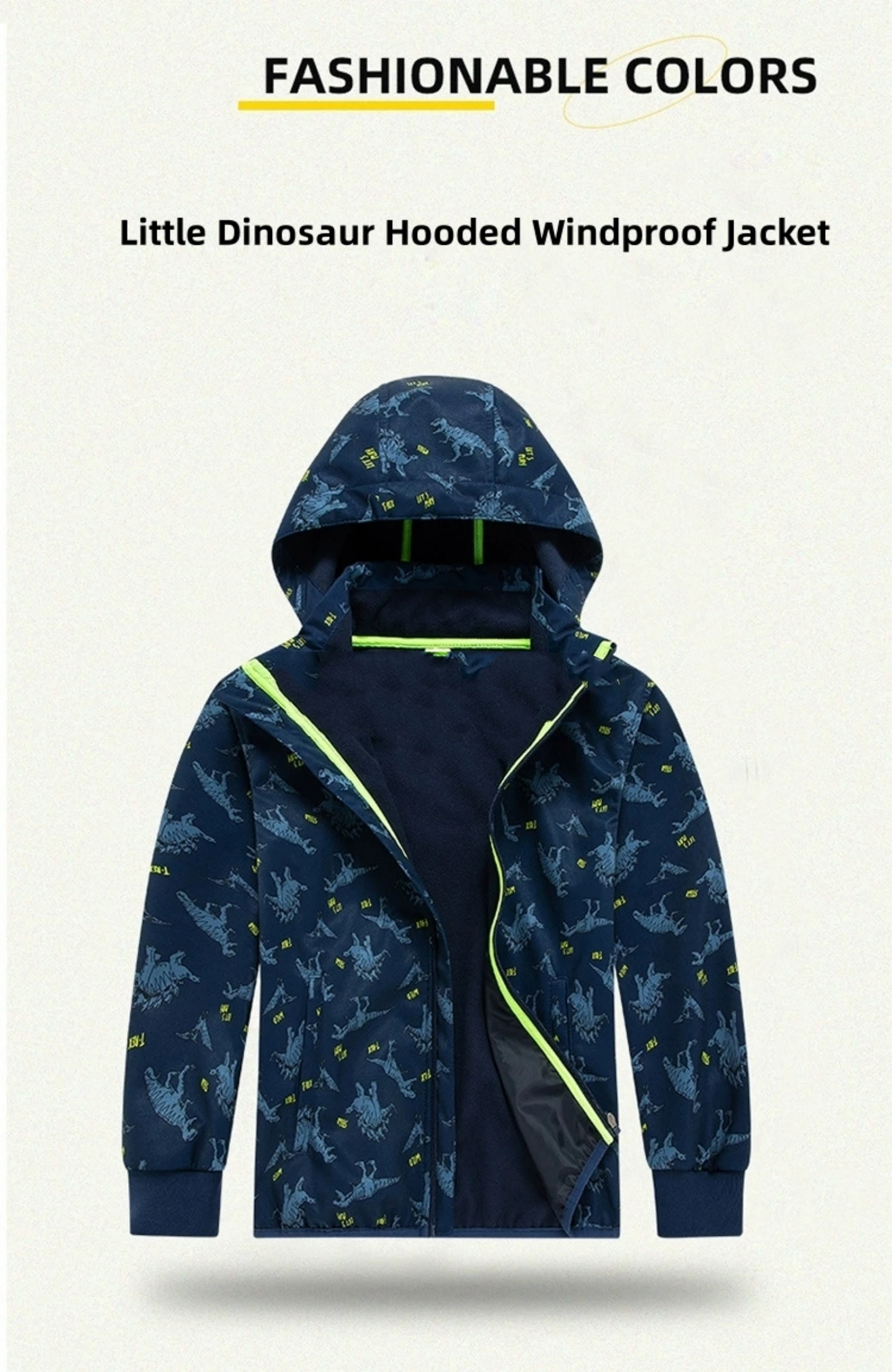 Dubbped Kids dinosaur Jacket ragazzi impermeabile cappello staccabile Design cappotto giacca a vento capispalla panno antivento in pile polare